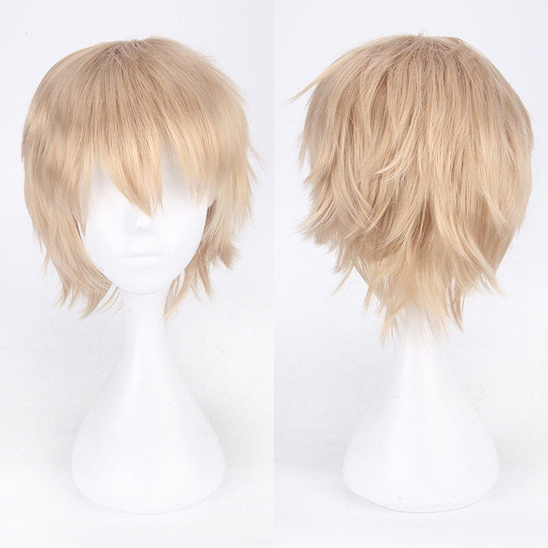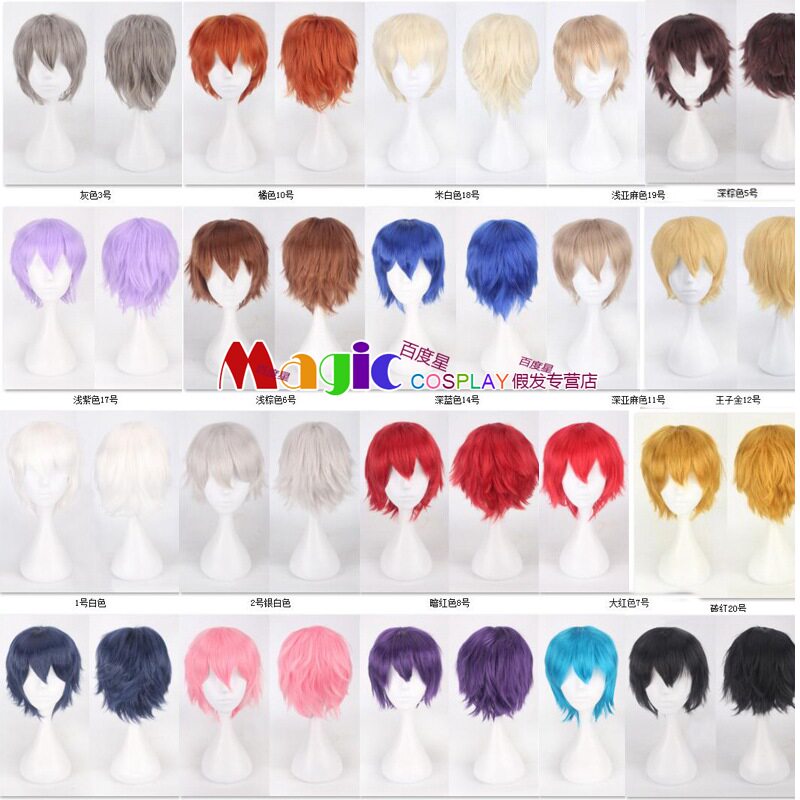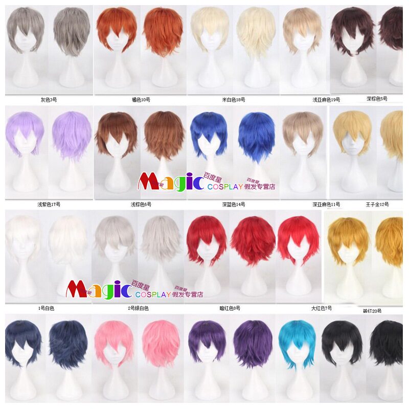 淘宝短发万用男黑白红蓝灰桔橙黄棕粉紫浅亚麻深棕色反翘短发COS假发