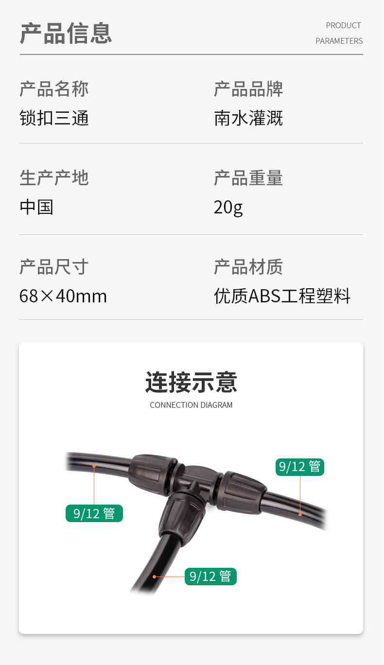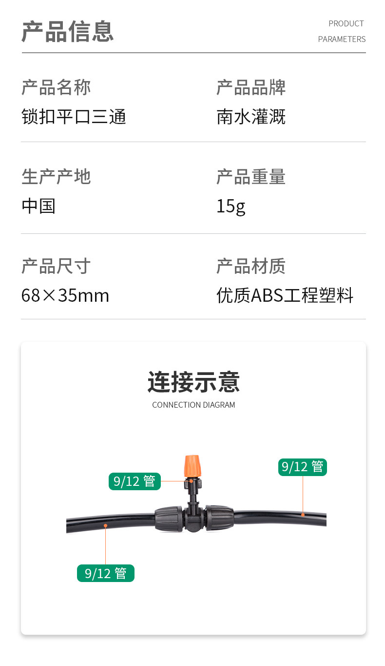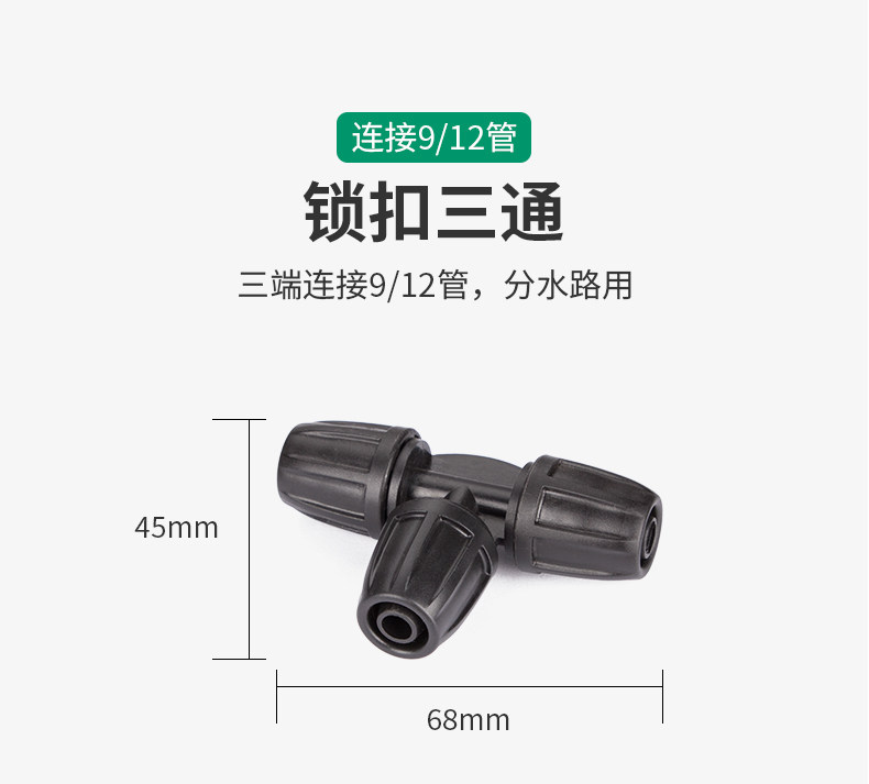 淘宝9/12 锁扣三通 自动浇水配件毛管接头水管快接微喷滴灌 家庭园艺