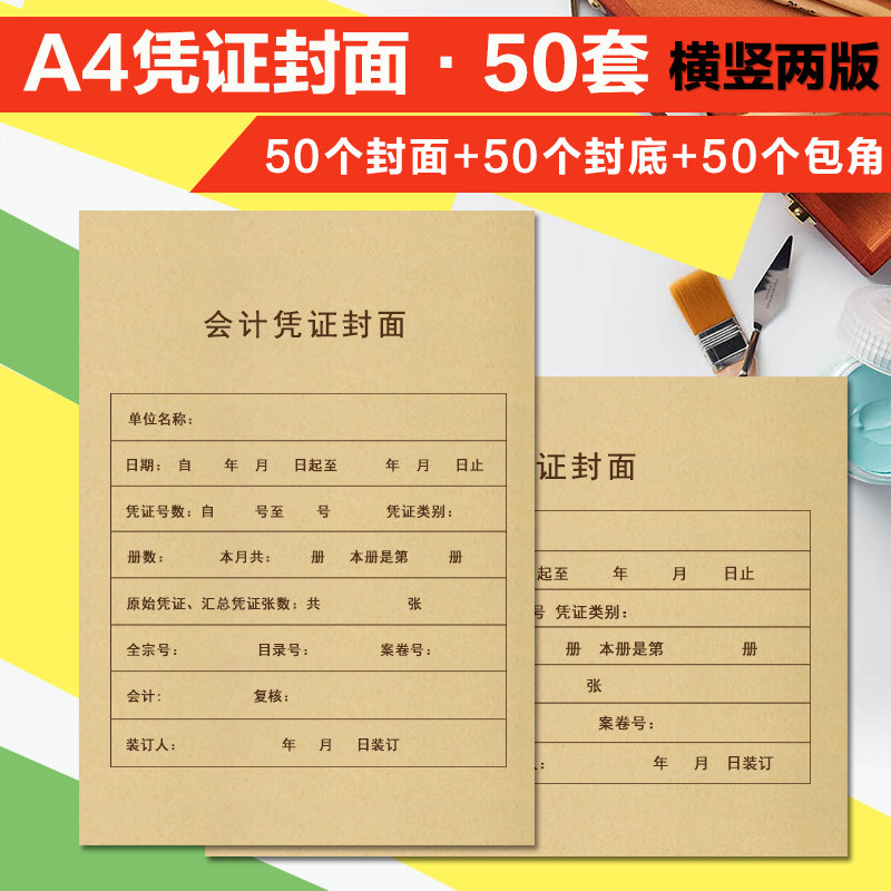 淘宝凭证封面A4纸大号牛皮纸封皮会计凭证封面横版竖版封套连体装订
