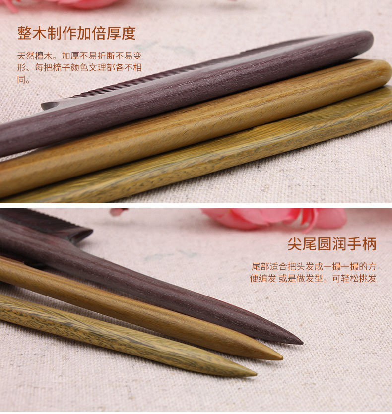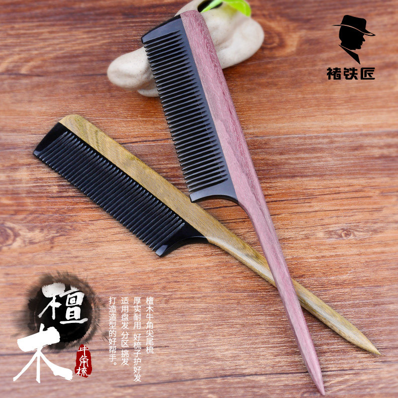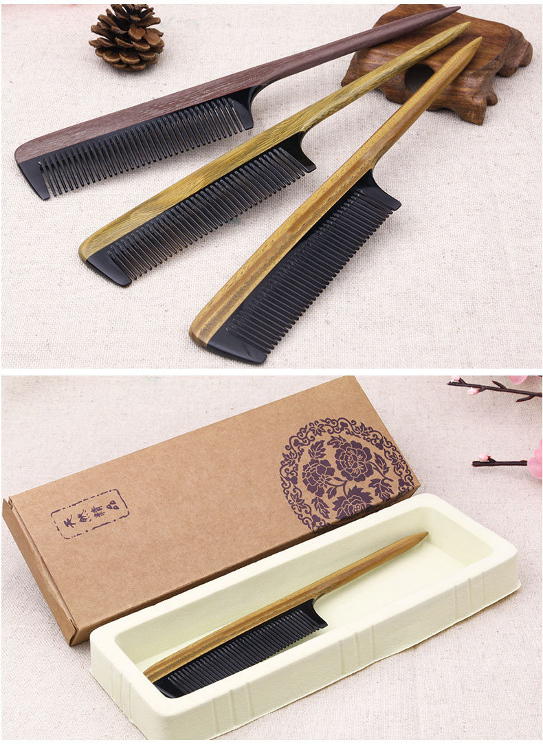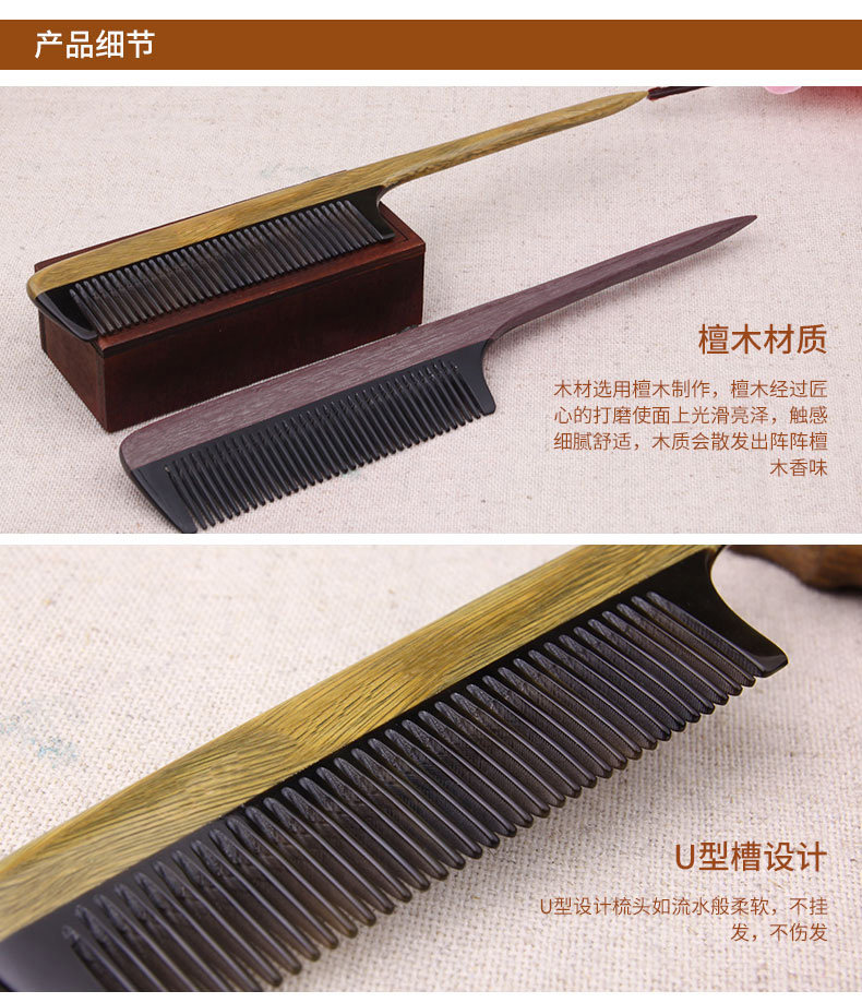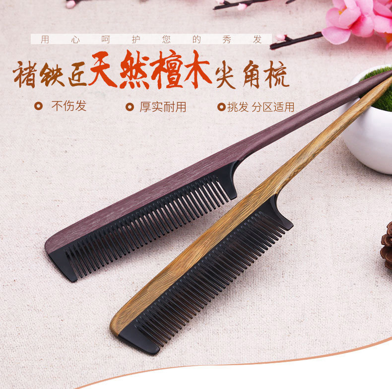 淘宝绿檀木梳子尖尾梳牛角梳美发顺发梳子女打毛挑发盘发梳子家用刻字