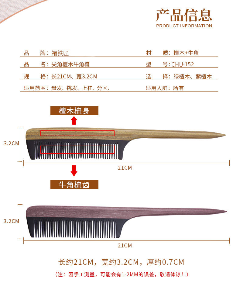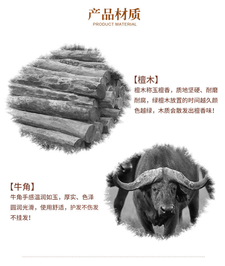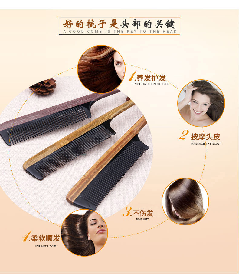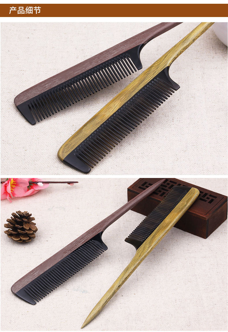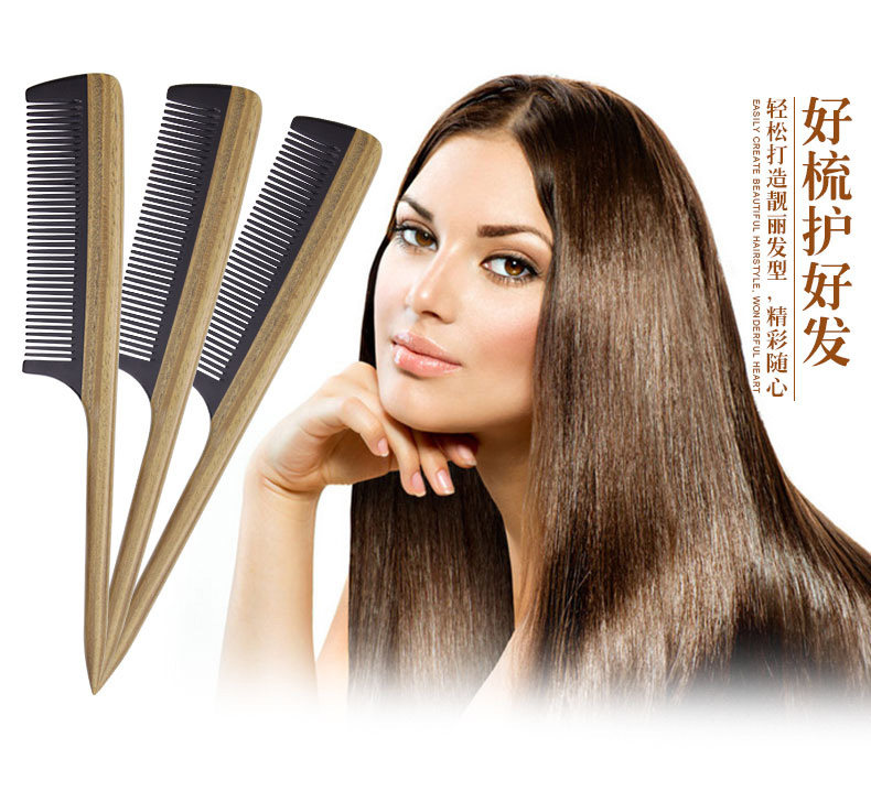 淘宝绿檀木梳子尖尾梳牛角梳美发顺发梳子女打毛挑发盘发梳子家用刻字