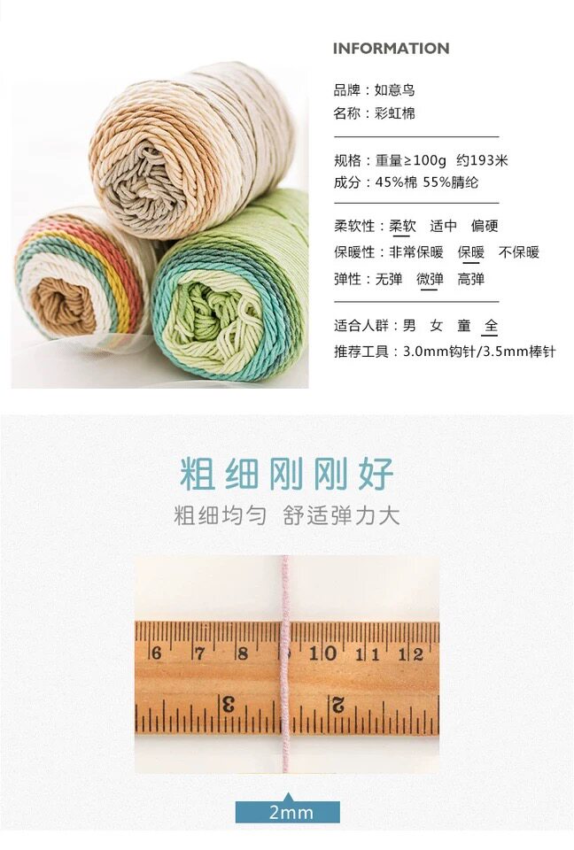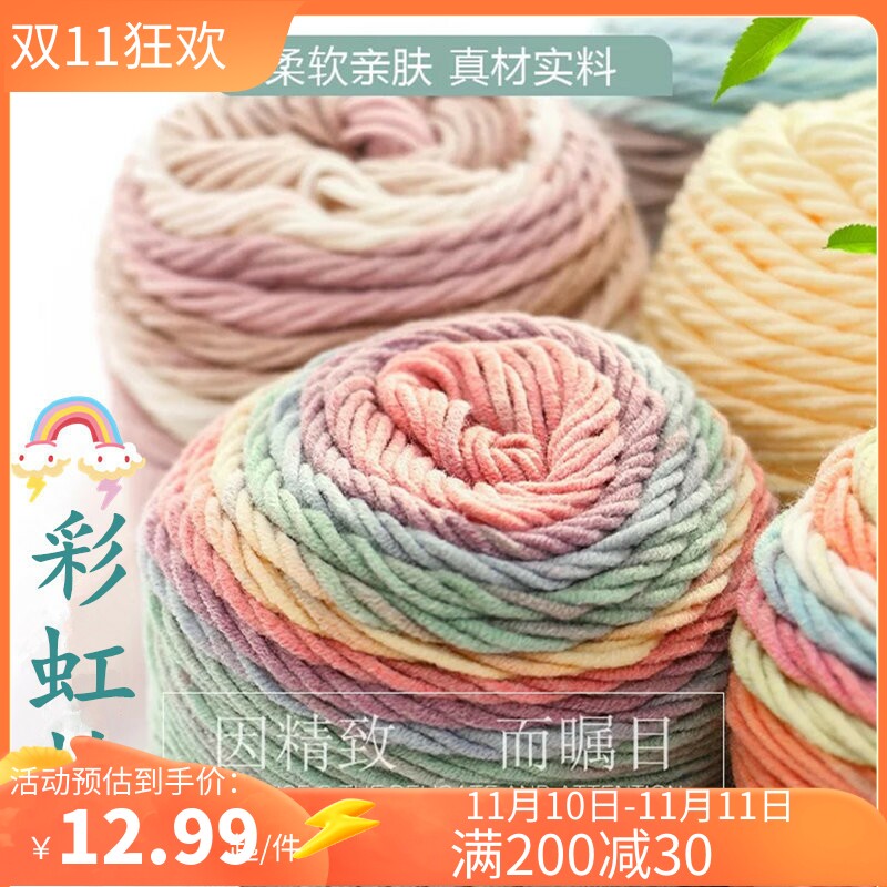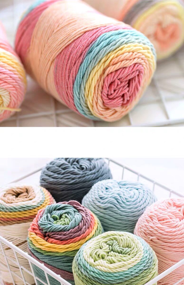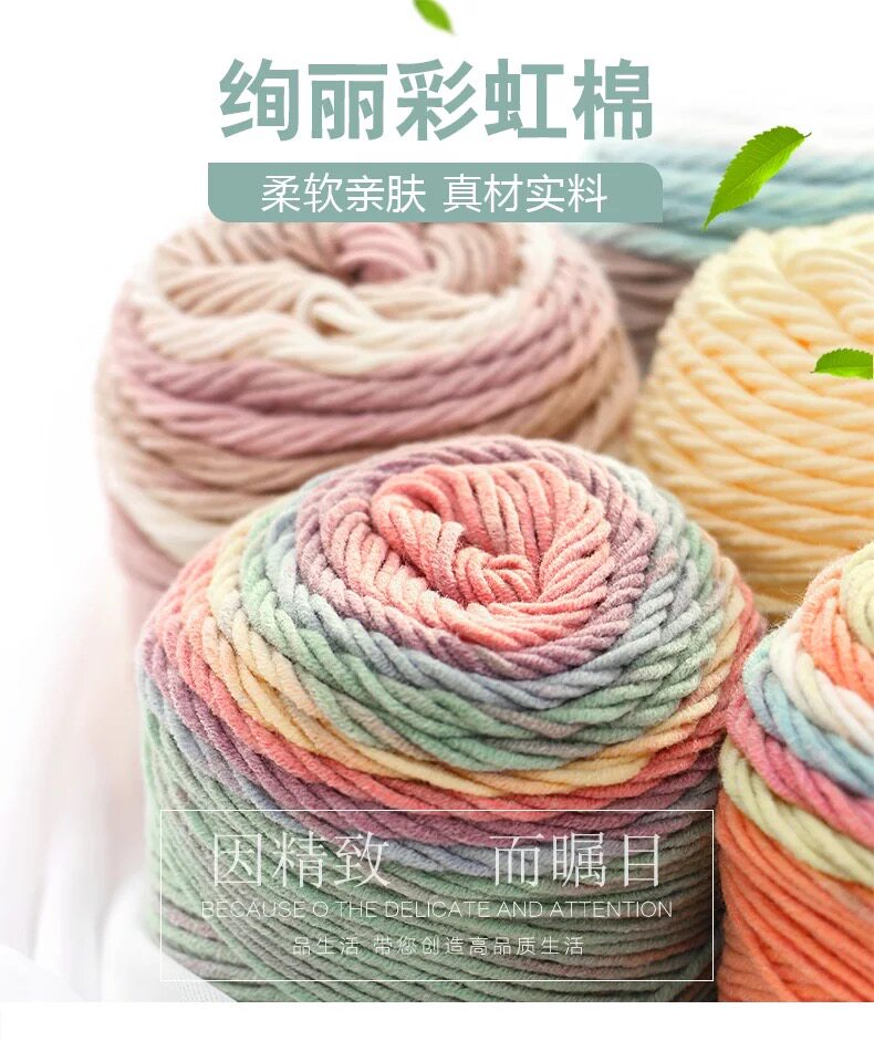淘宝如意鸟5股段染彩虹棉牛奶棉 手工编织围巾抱枕毯子裙子渐变色毛线