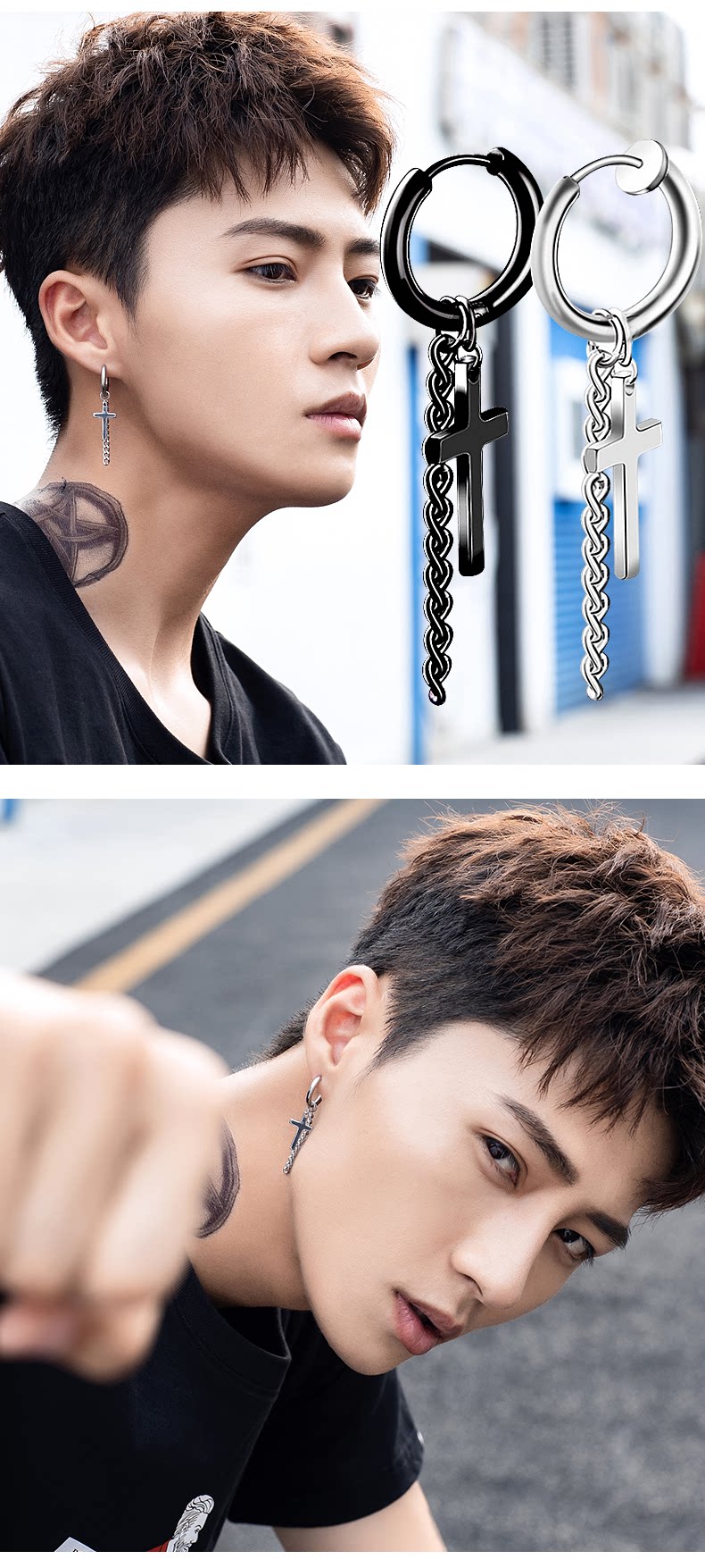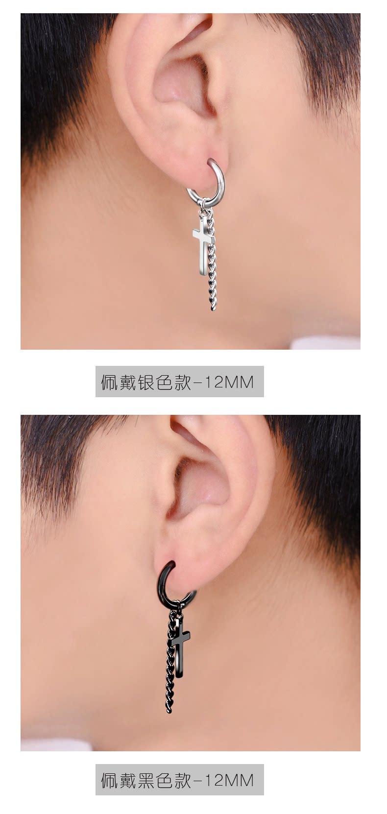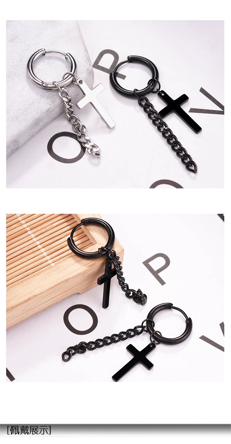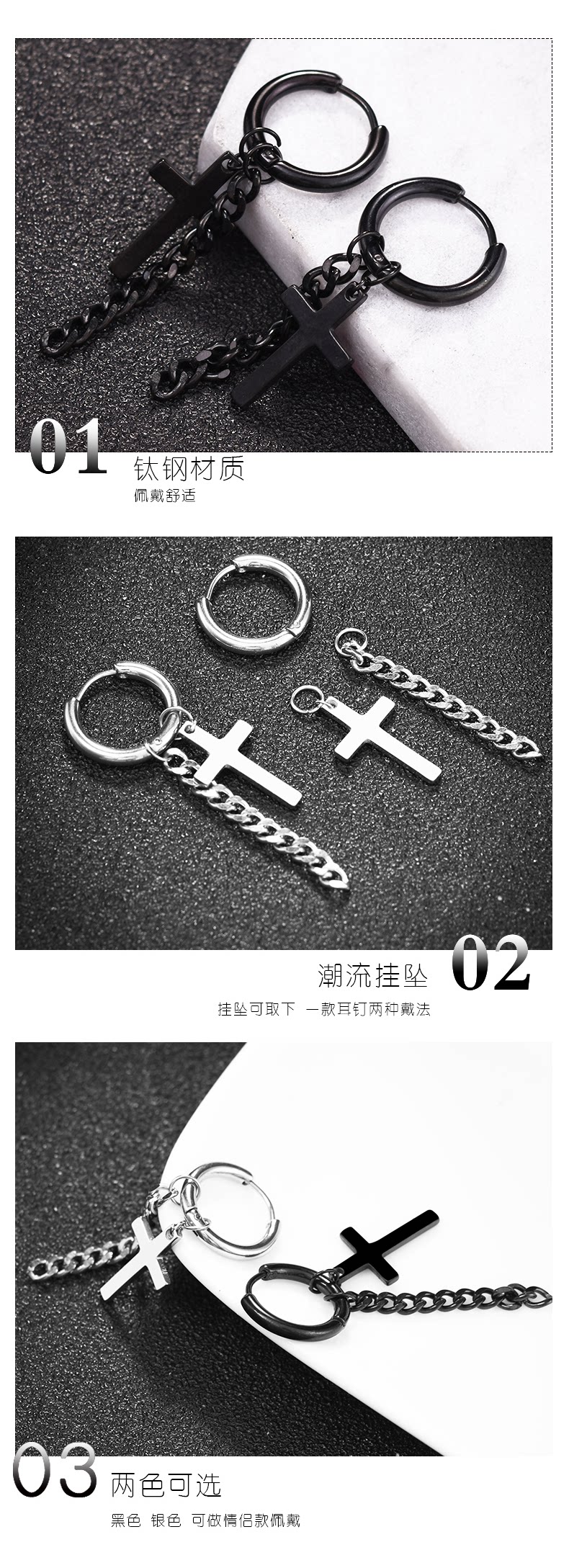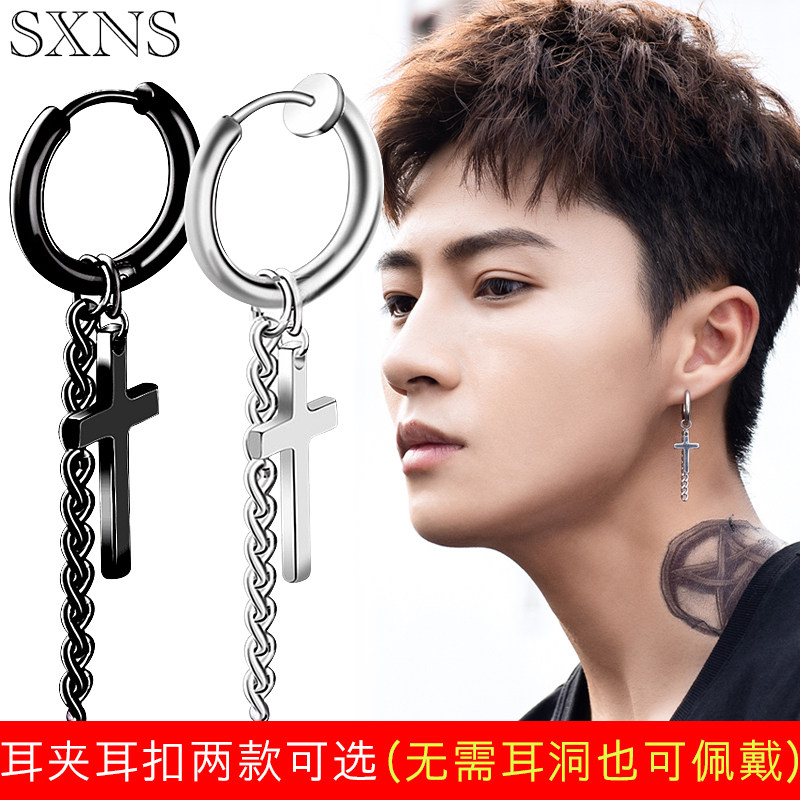 淘宝十字架耳环男士长款链条个性无耳洞耳夹耳钉单只街头潮嘻哈耳坠女