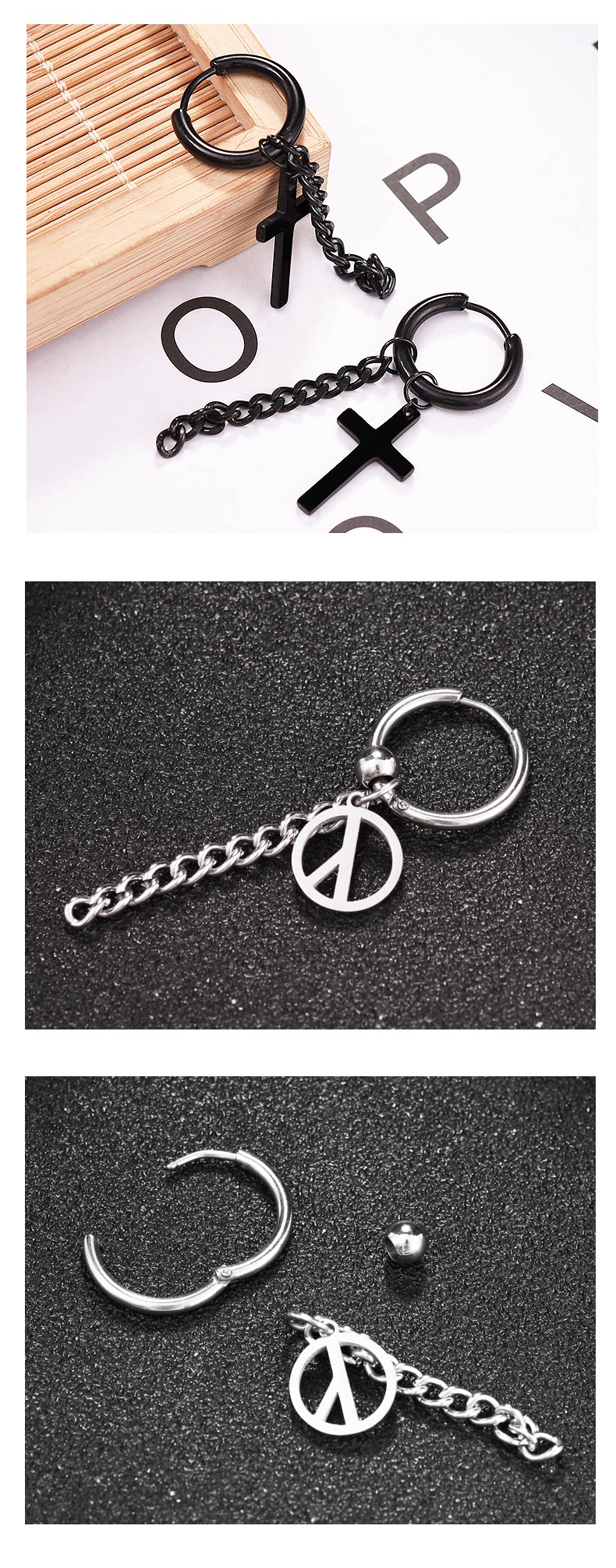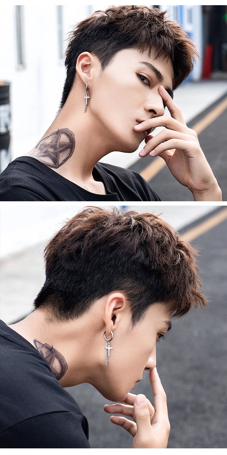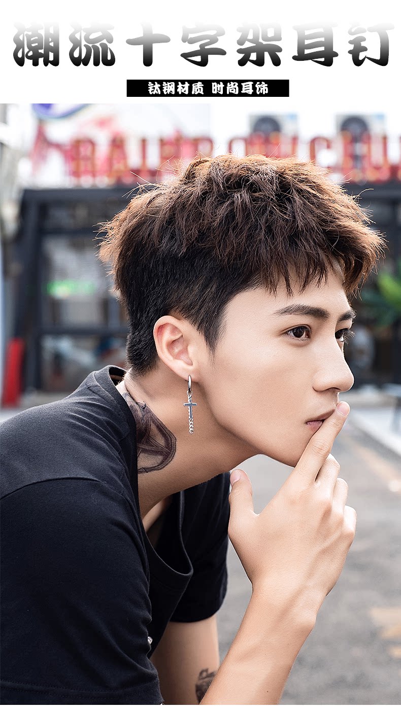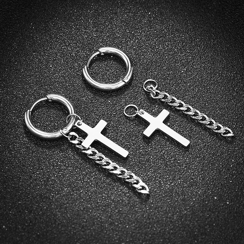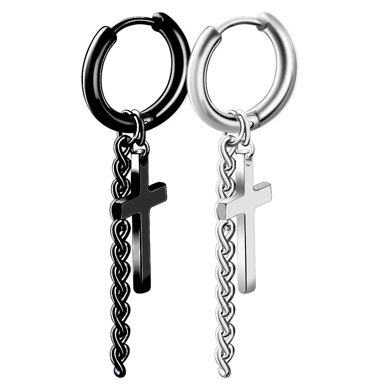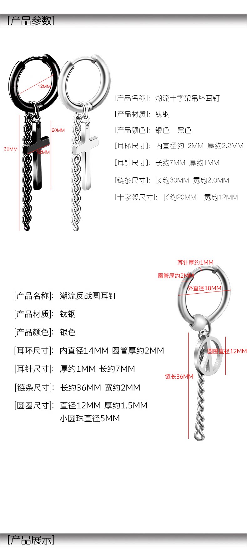 淘宝十字架耳环男士长款链条个性无耳洞耳夹耳钉单只街头潮嘻哈耳坠女