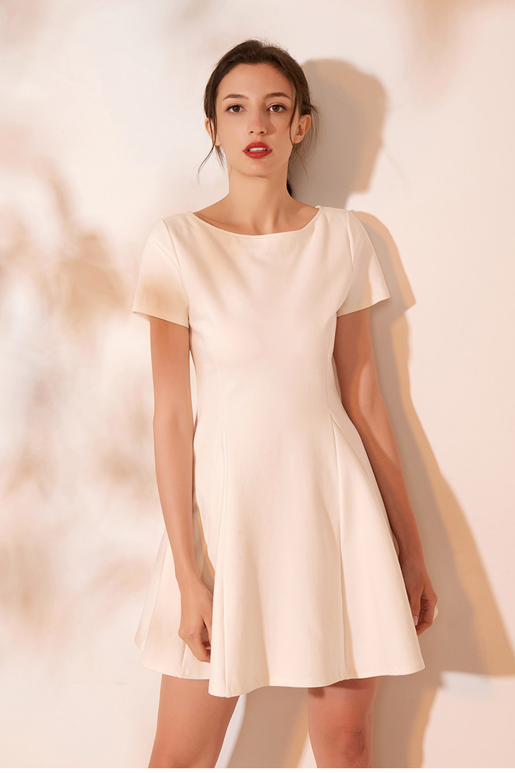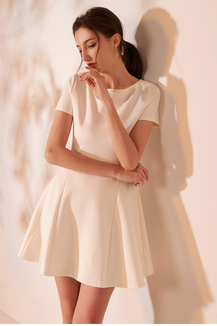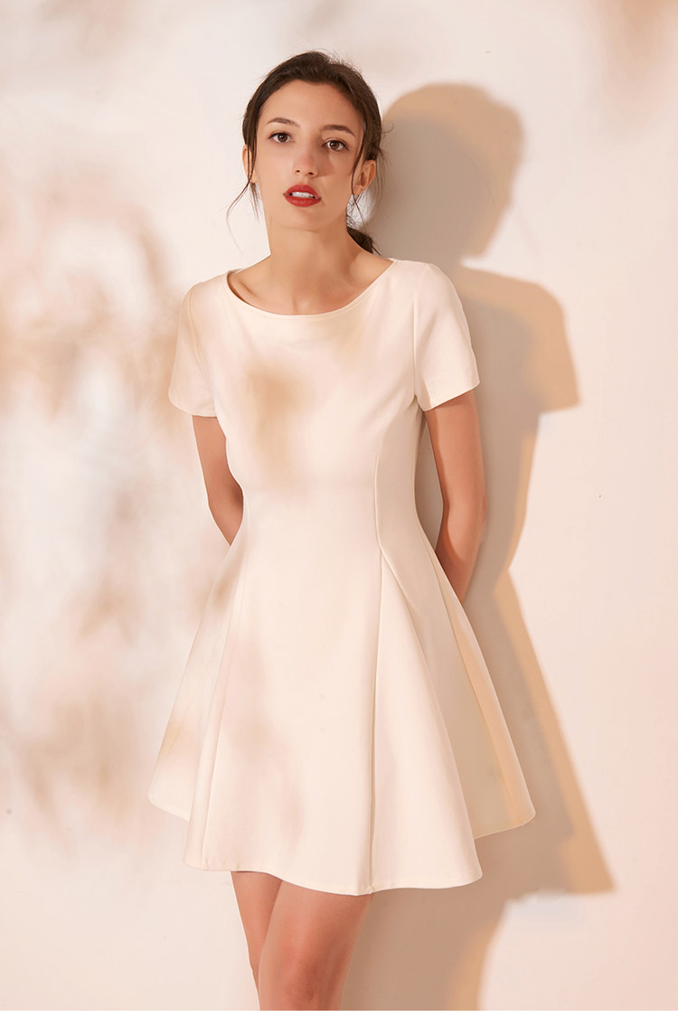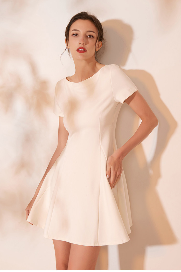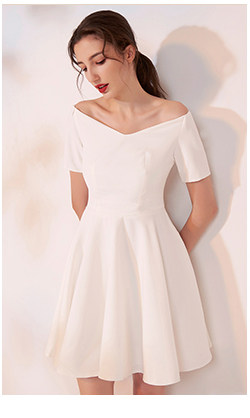 淘宝时五区简约小白裙白色礼服裙毕业小礼裙约会短款小个子短袖连衣裙
