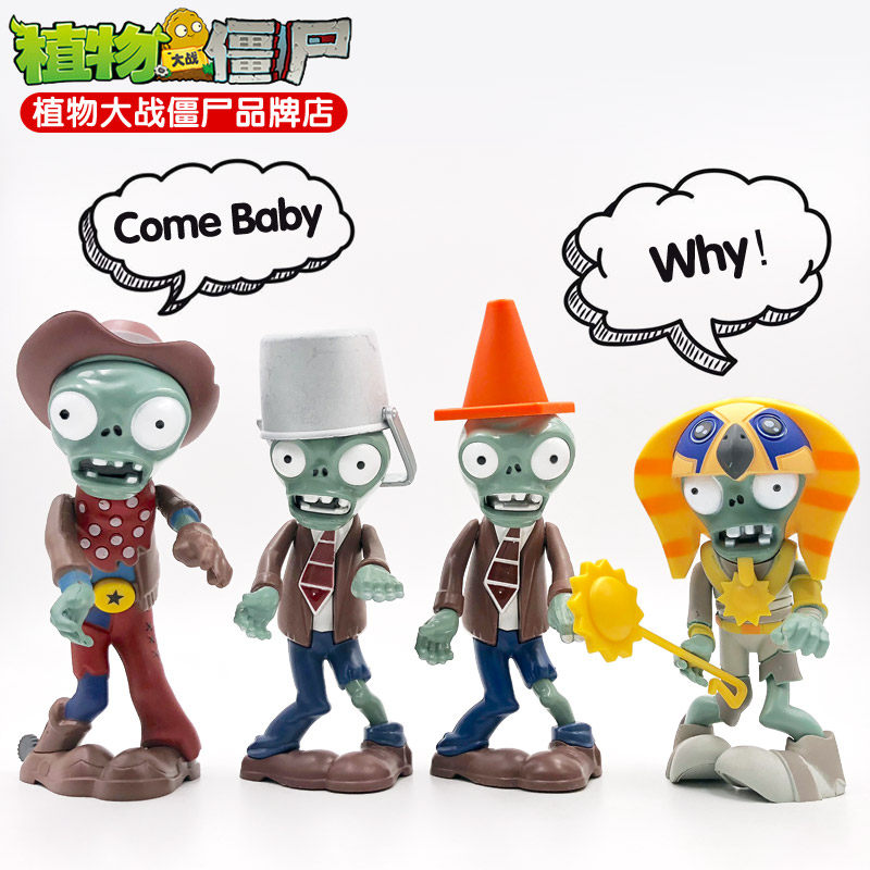 淘宝植物大战僵尸花园战争2玩具太阳神疆尸牛仔铁桶路障僵尸公仔模型