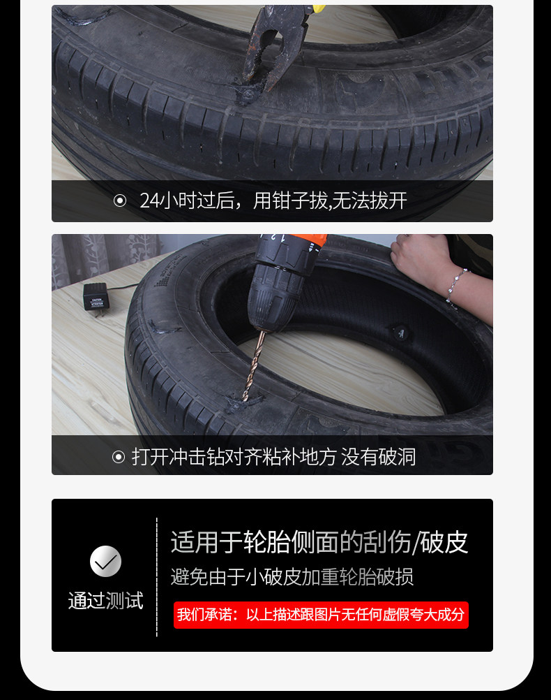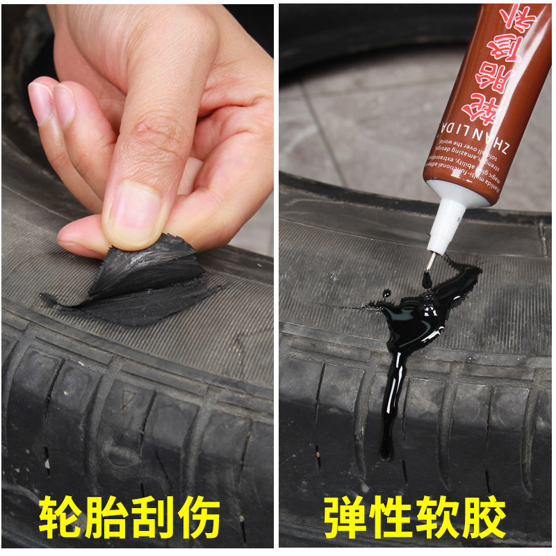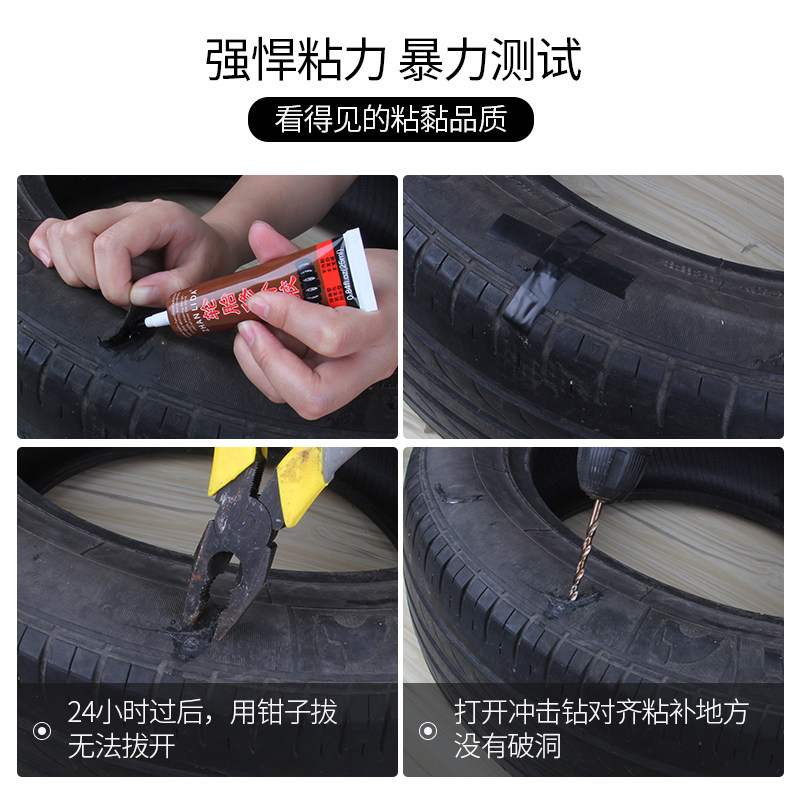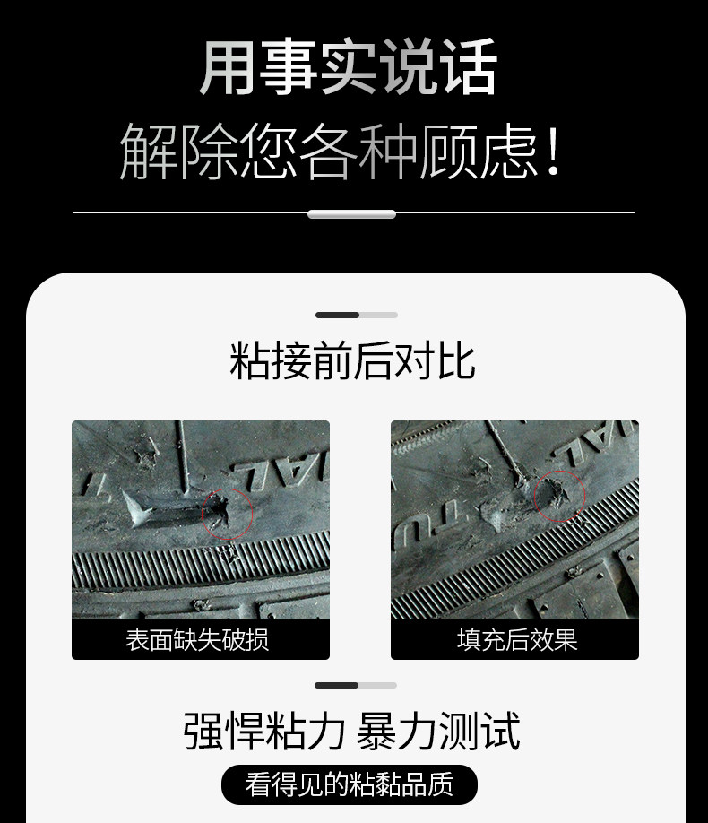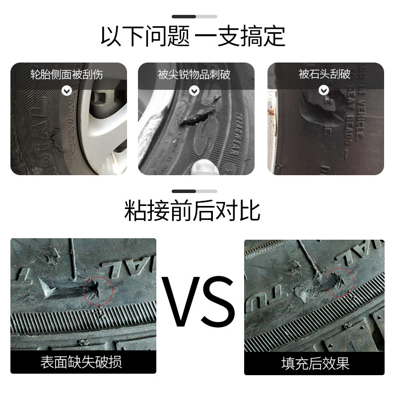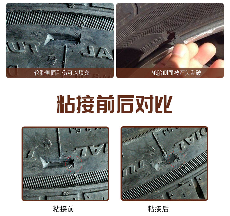 天猫粘汽车轮胎补丁胶橡胶真空修补强力侧面口子裂缝补裂刮伤修复填充黑色软性能沾外胎壁划痕硬伤的万能补胎胶水