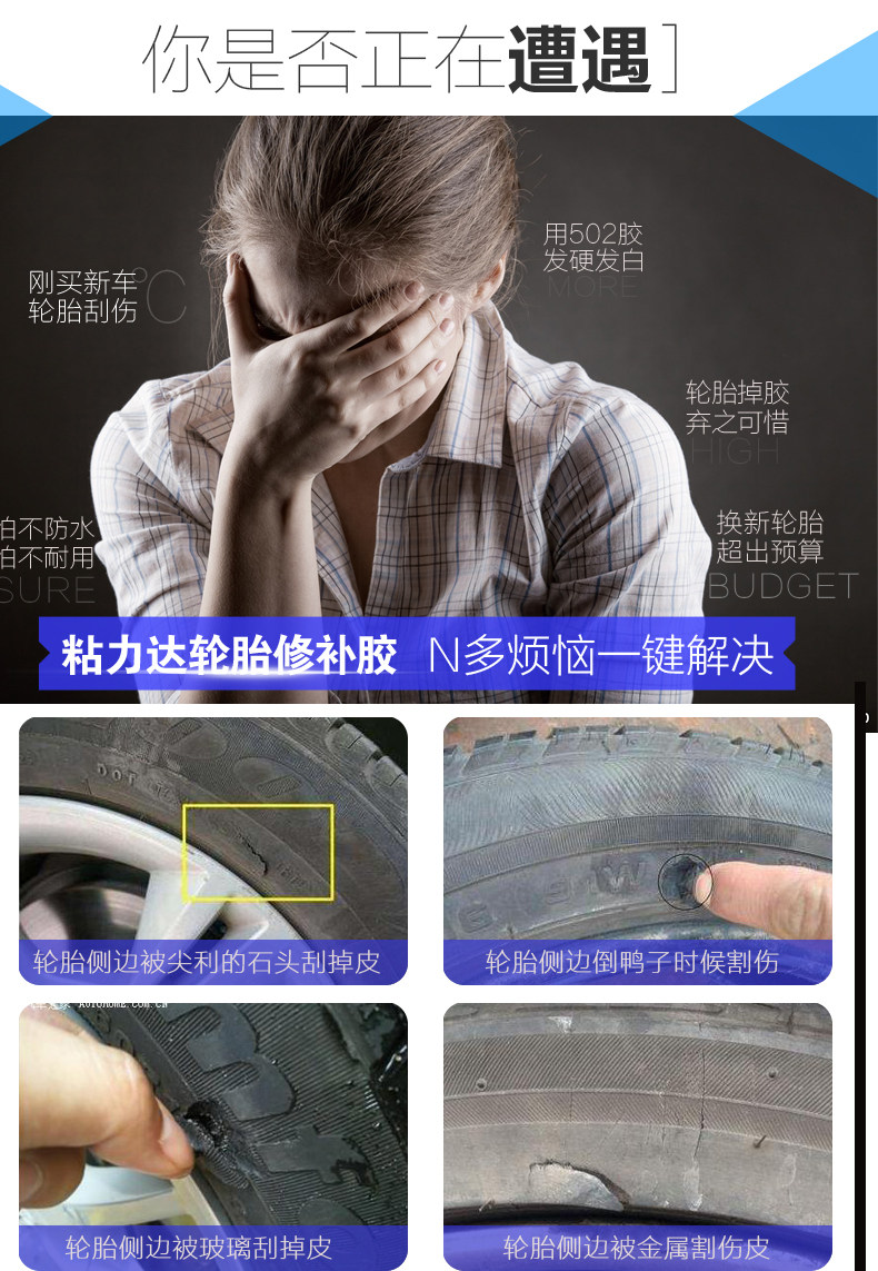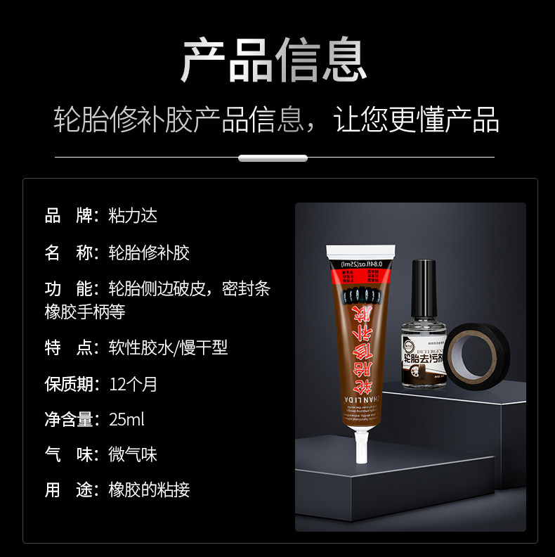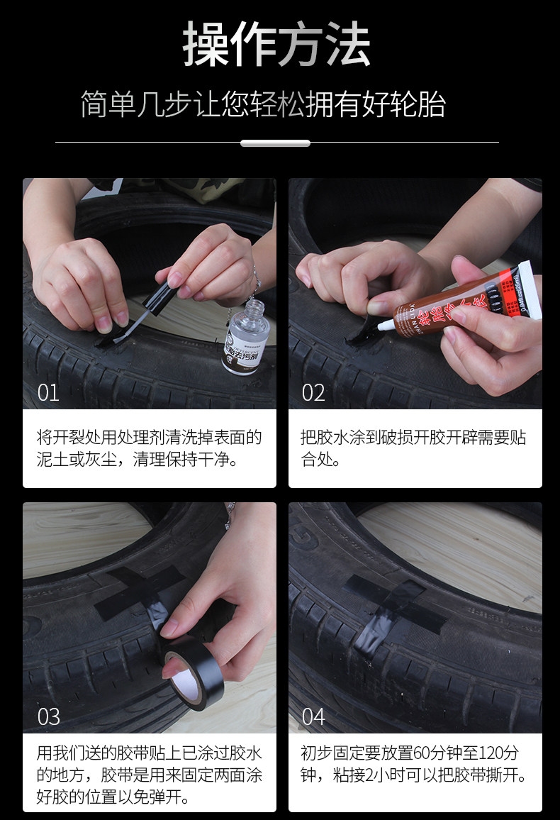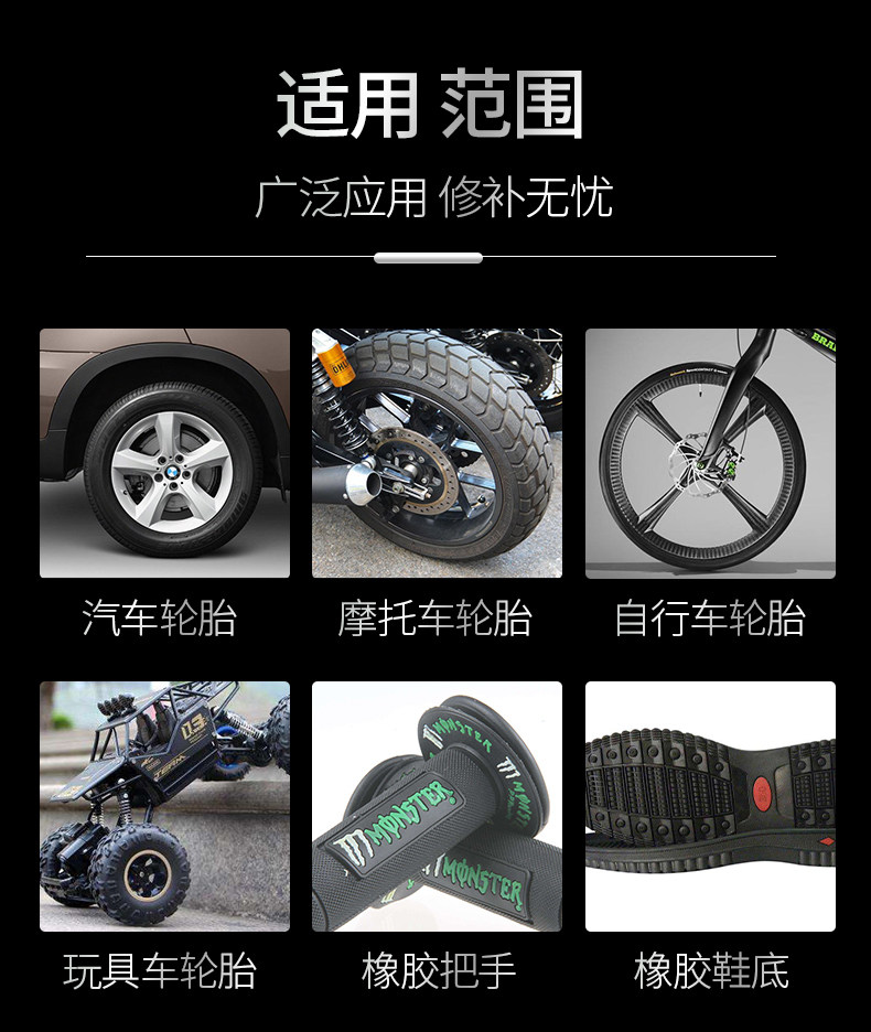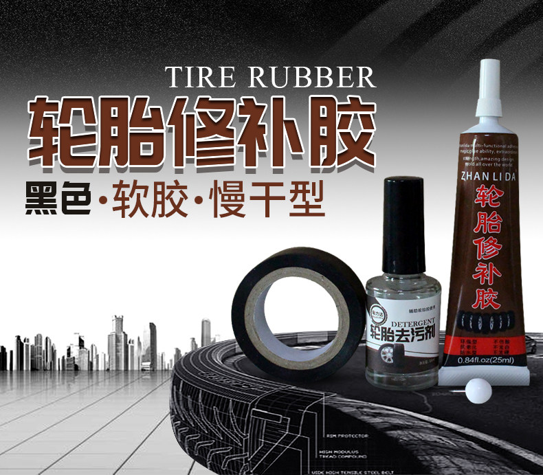 天猫粘汽车轮胎补丁胶橡胶真空修补强力侧面口子裂缝补裂刮伤修复填充黑色软性能沾外胎壁划痕硬伤的万能补胎胶水