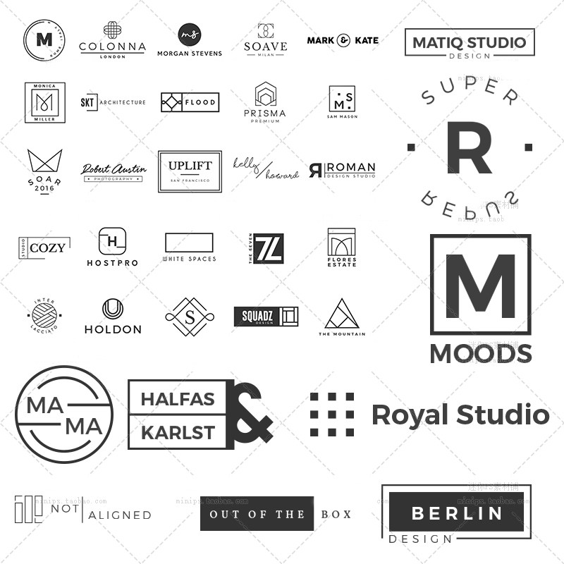 淘宝简约极简艺术创意英文字母logo图标水印PSD分层矢量设计素材资源