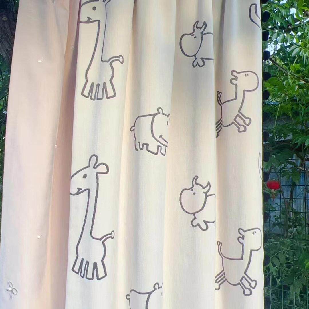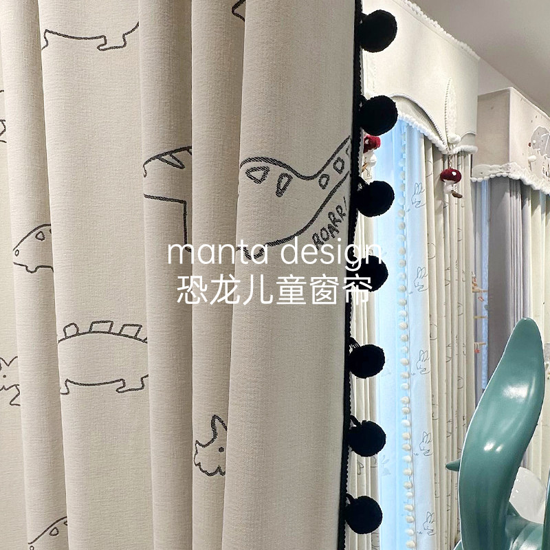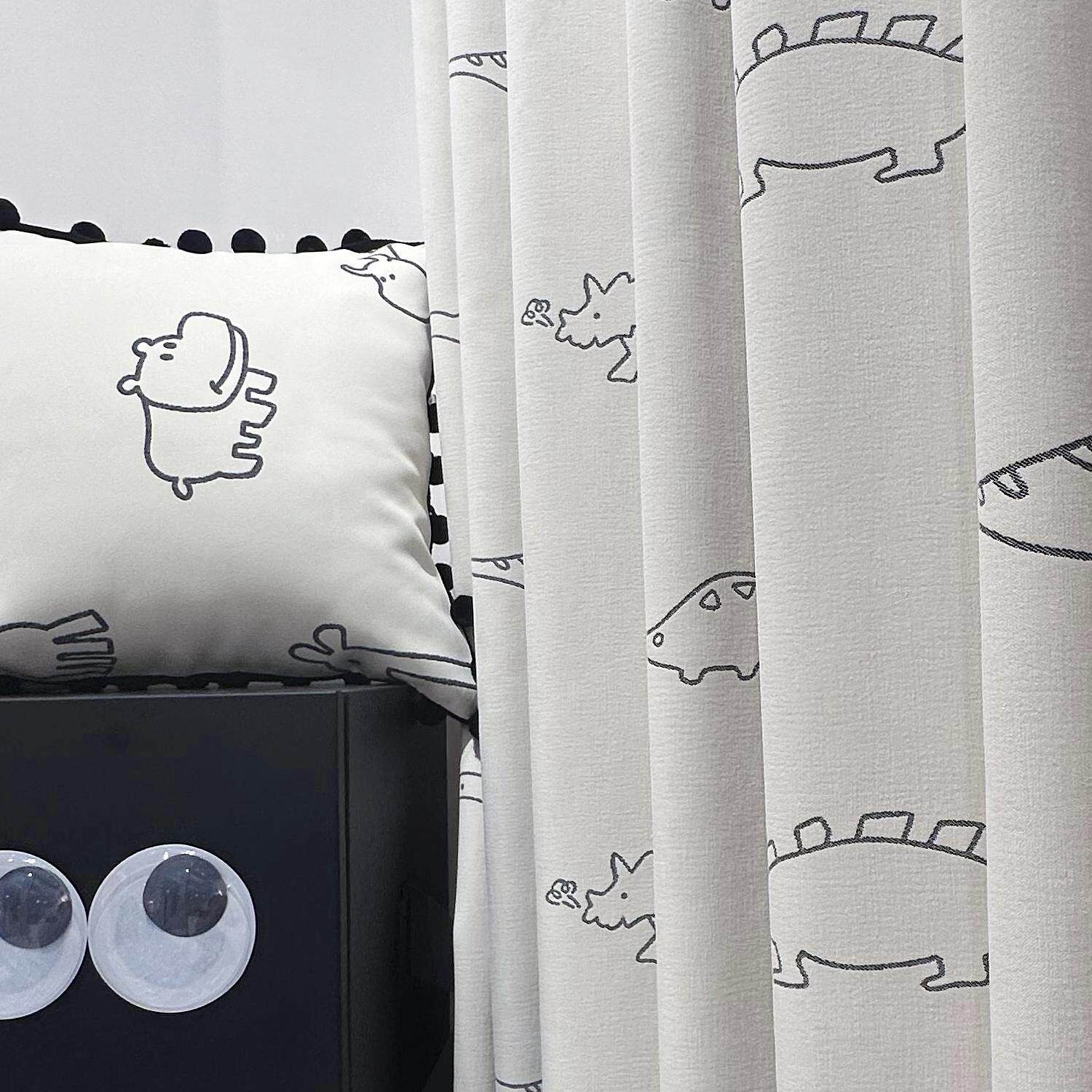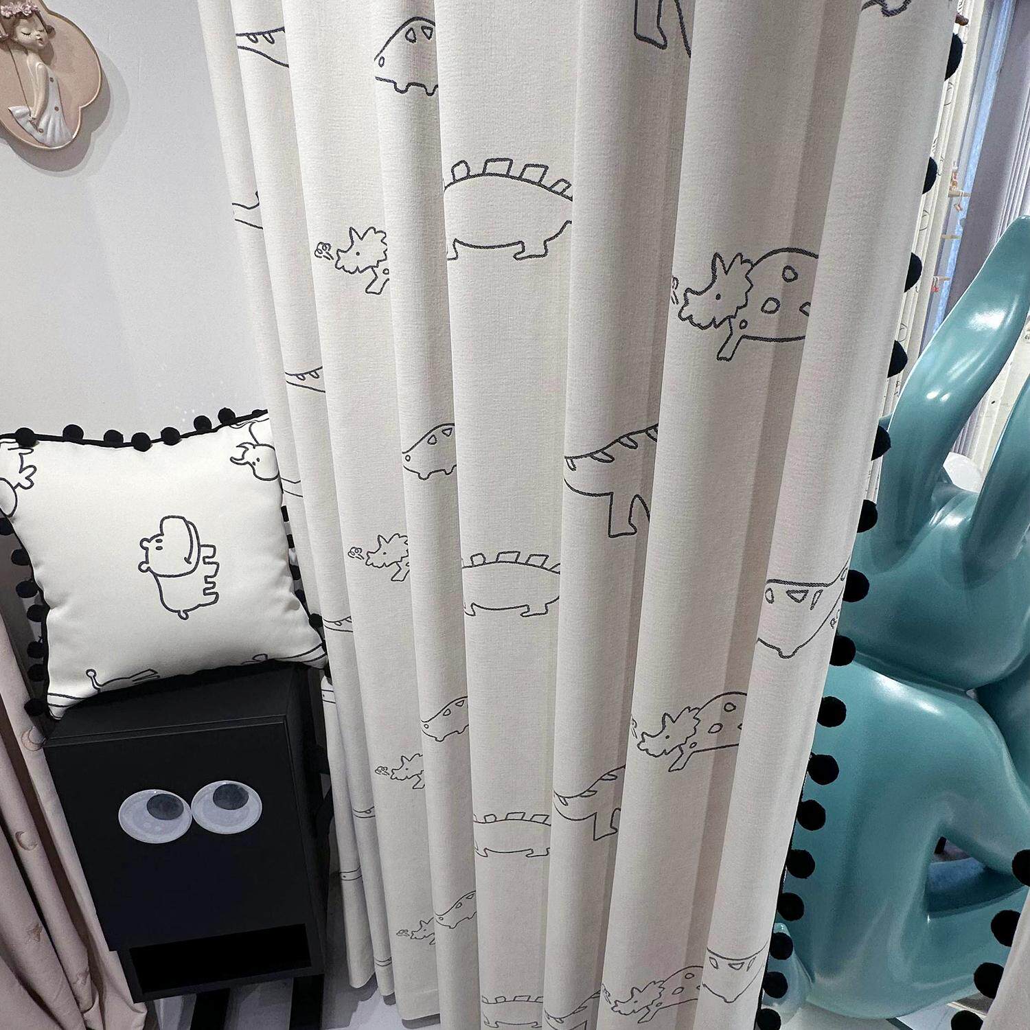 淘宝恐龙儿童房北欧女孩男孩新款雪尼尔提花黑白窗帘定制卧室高级感