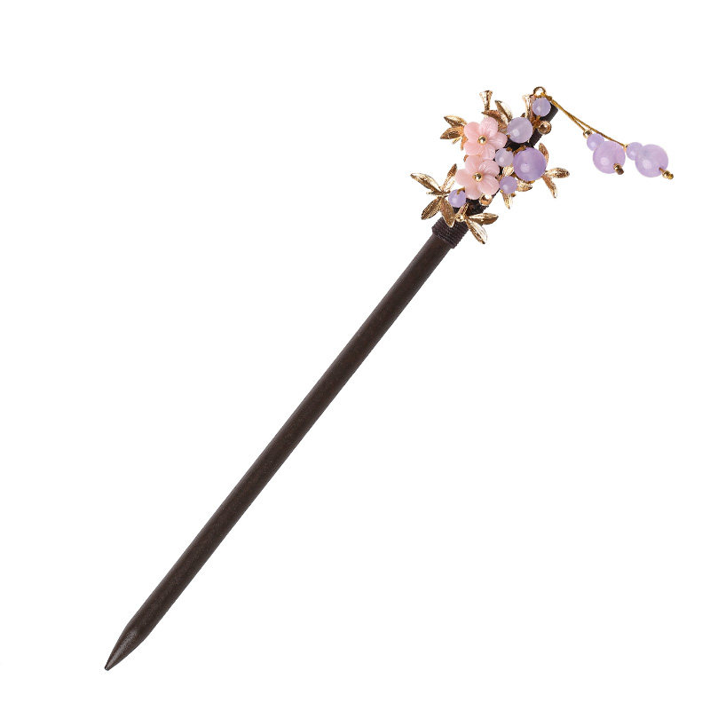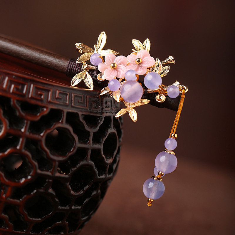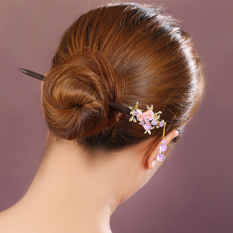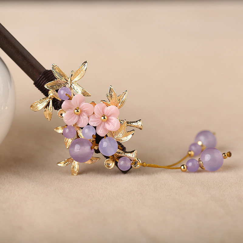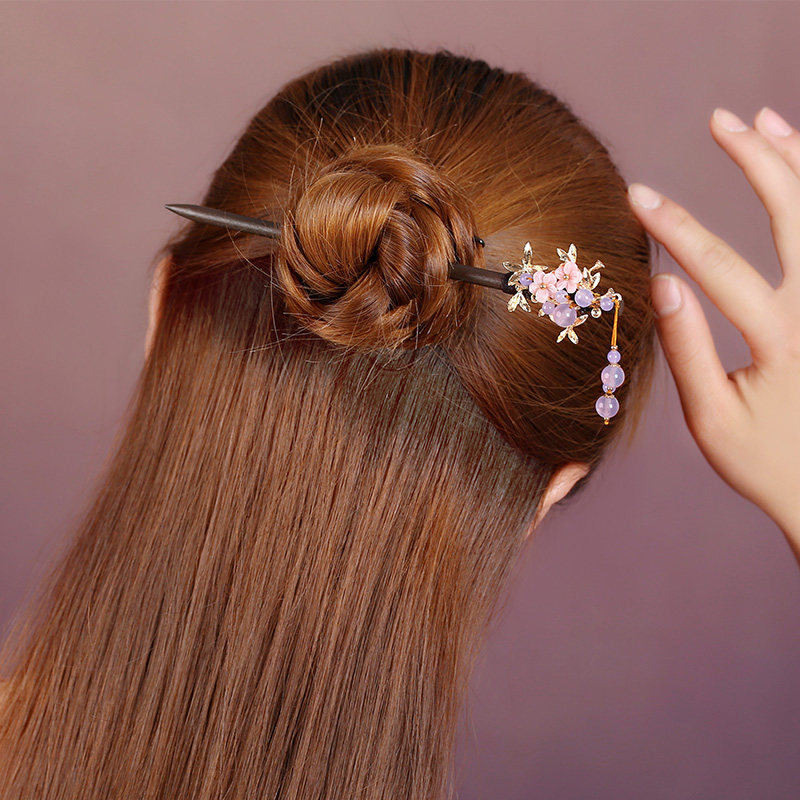 淘宝复古盘发饰品头发古风发簪紫色流苏木簪子成人头汉服发饰古装头饰