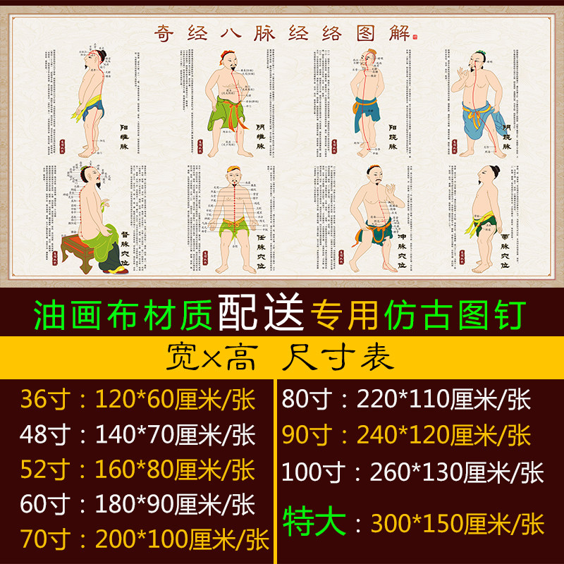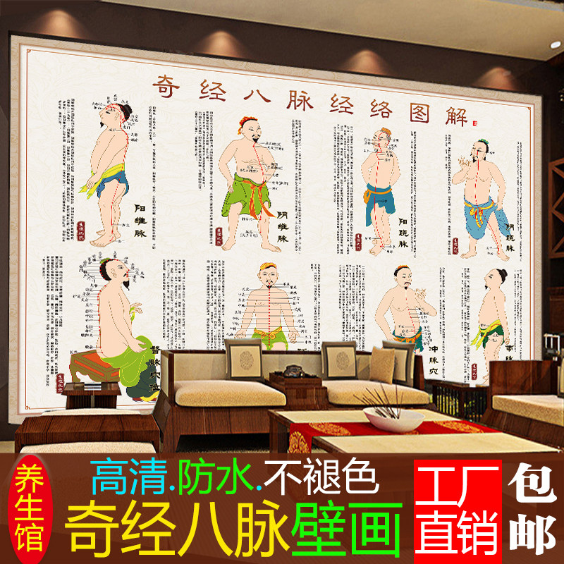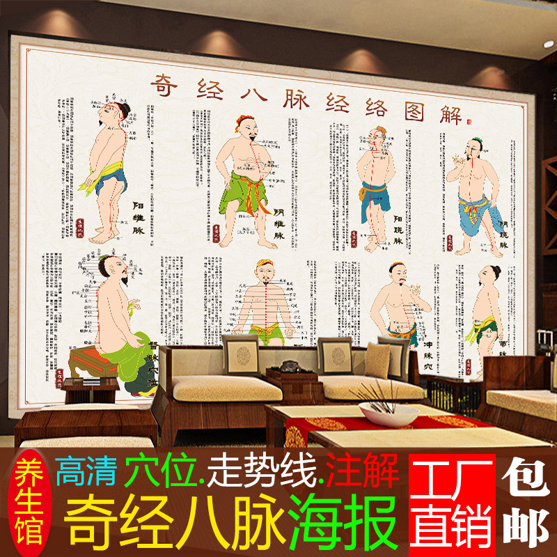 淘宝奇经八脉图经络海报人体穴位图中医宣传画壁画大挂图养身馆装饰画