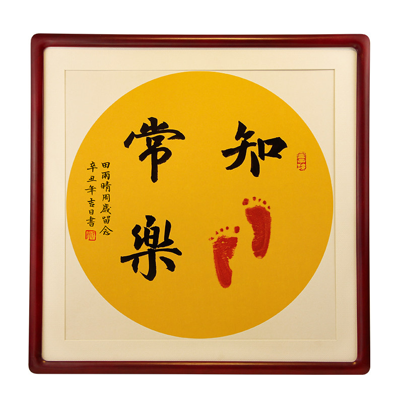 淘宝知足常乐字画脚印宝宝周岁足印手写书法实木相框小脚丫满月手足印