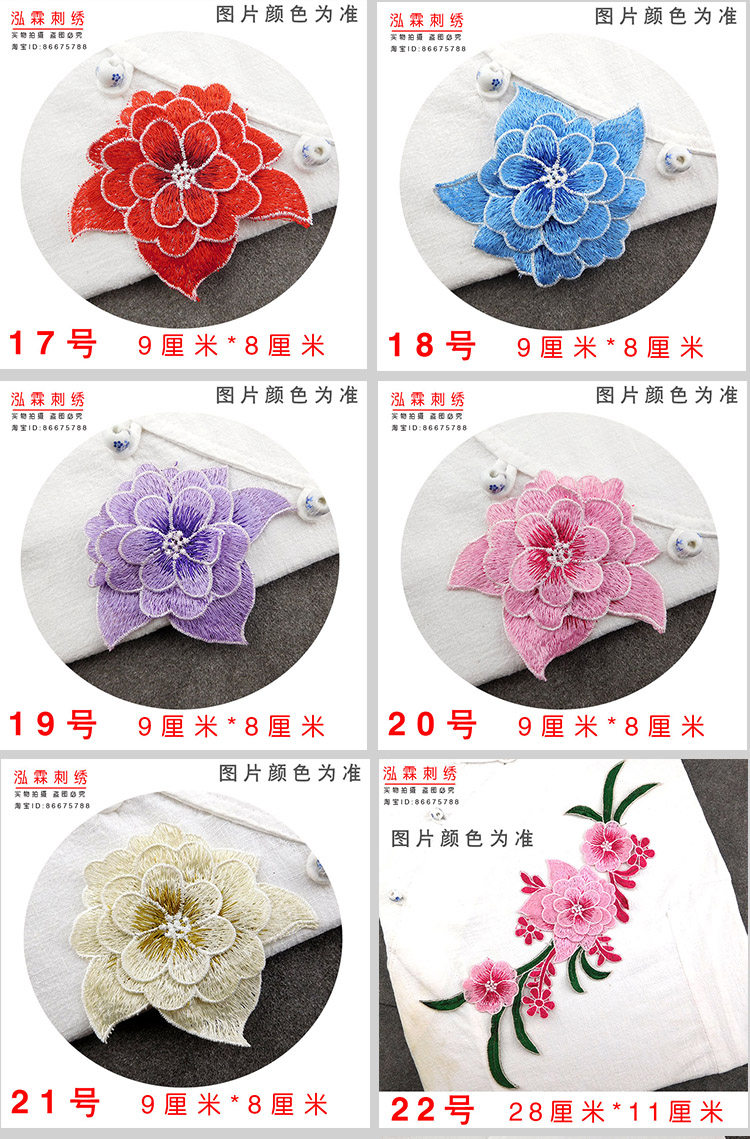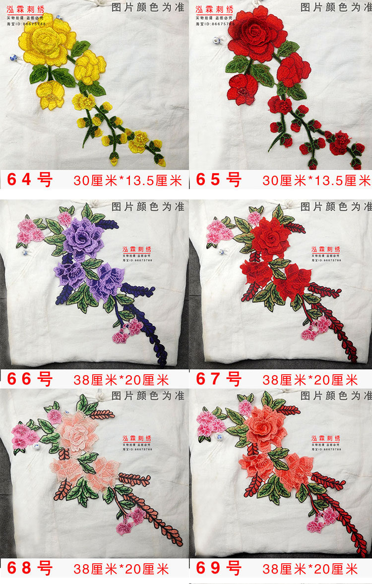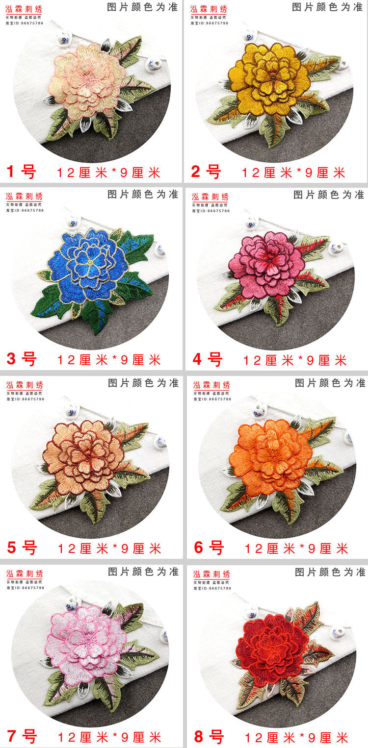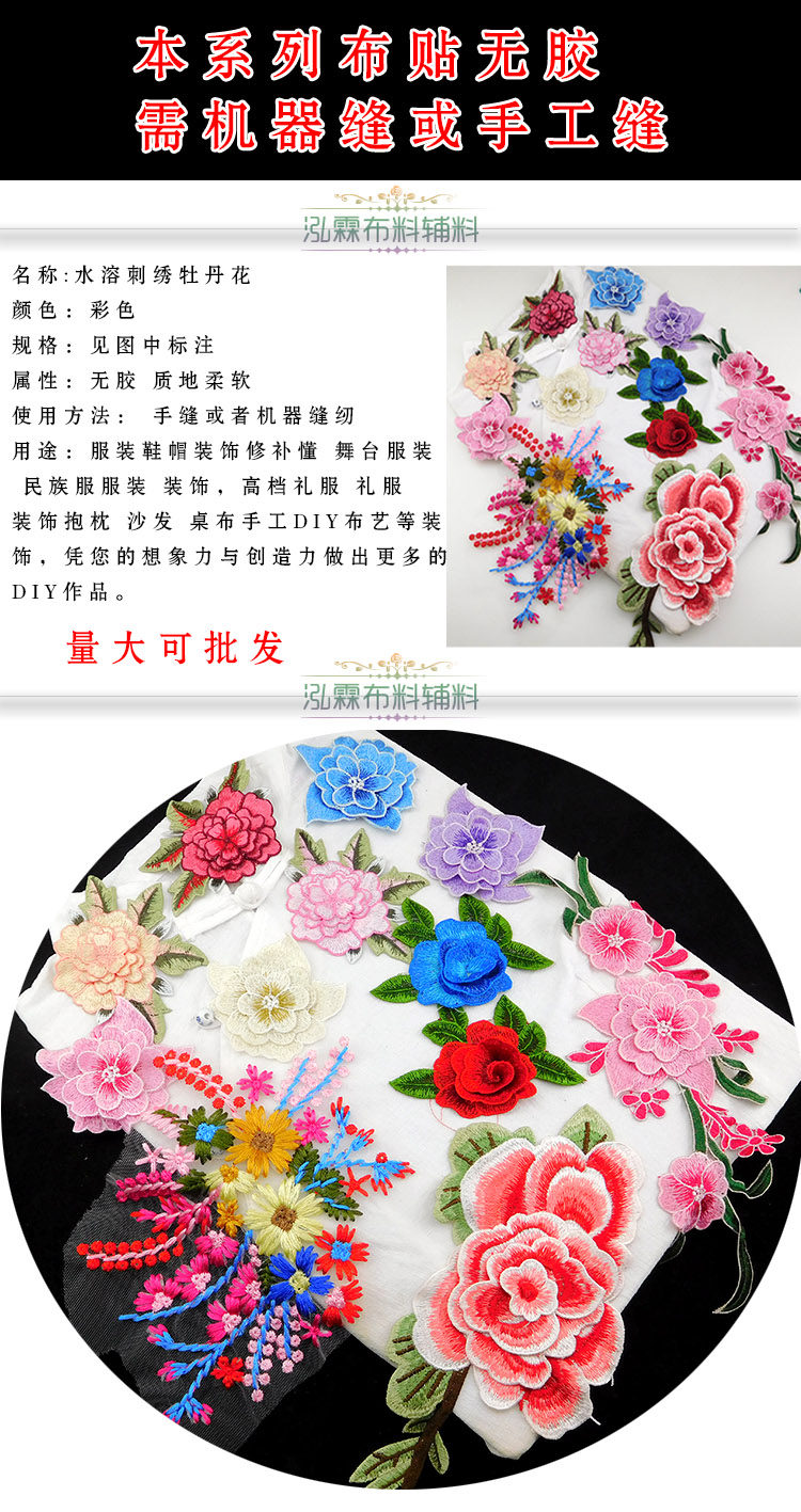 淘宝水溶立体牡丹花刺绣花朵布贴衣服装饰大小号补丁旗袍礼服绣花贴