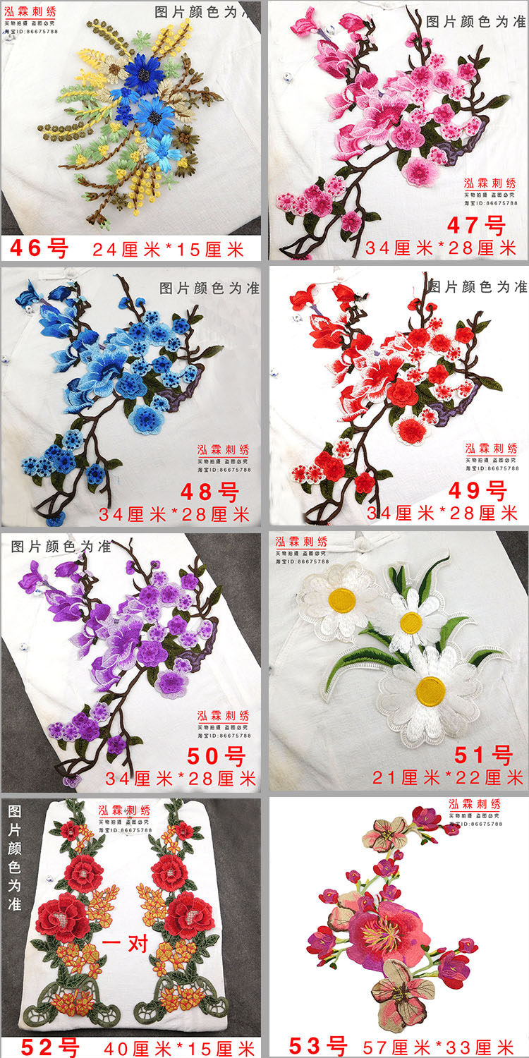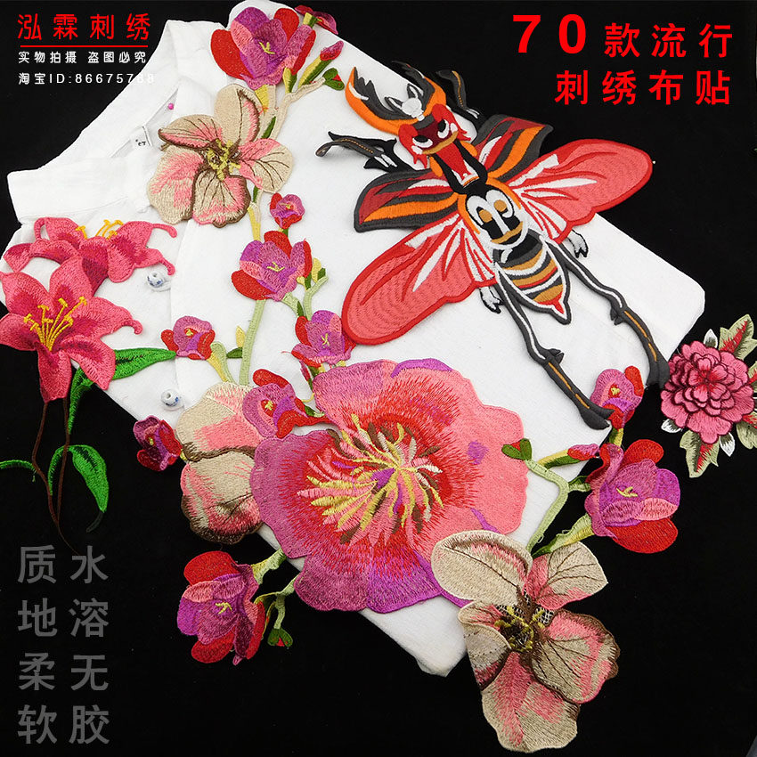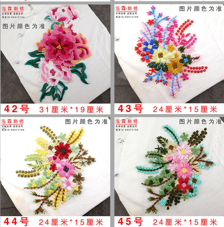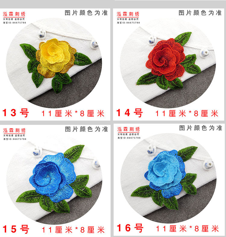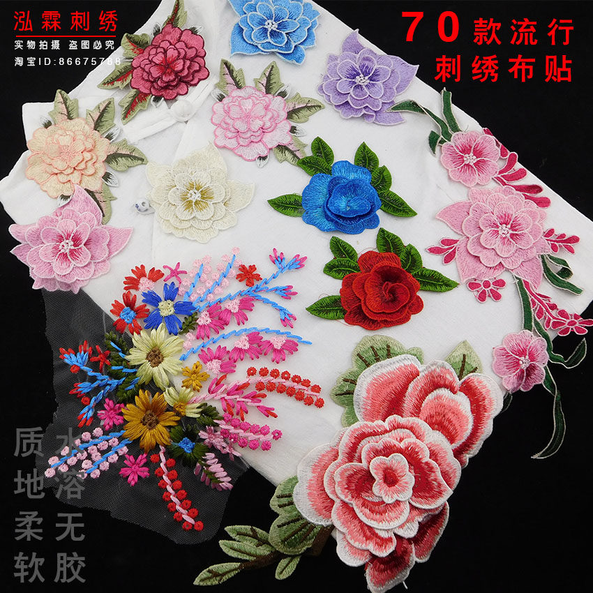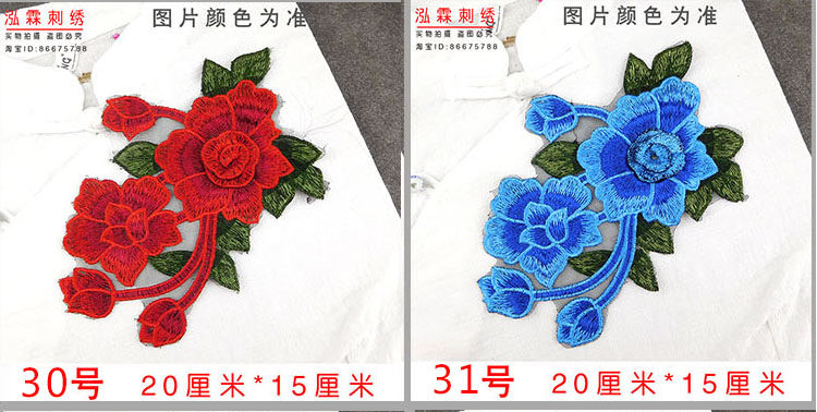 淘宝水溶立体牡丹花刺绣花朵布贴衣服装饰大小号补丁旗袍礼服绣花贴