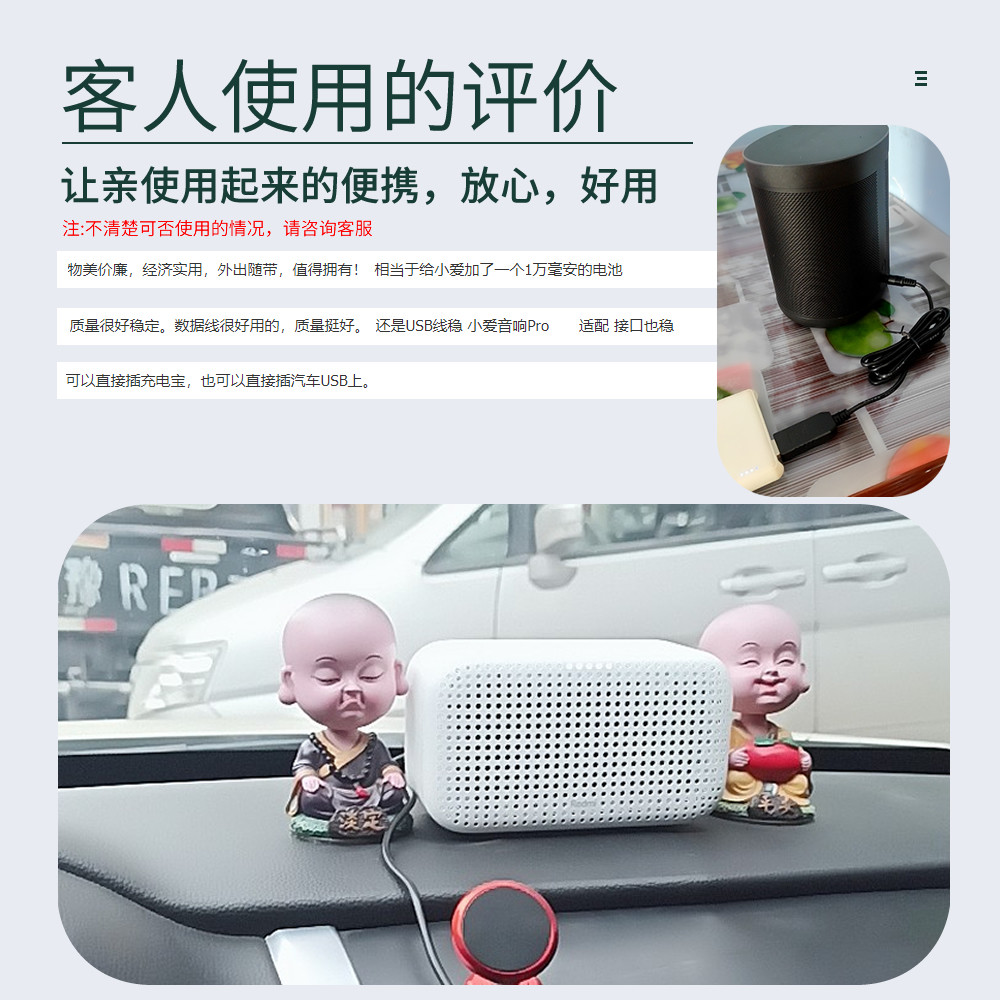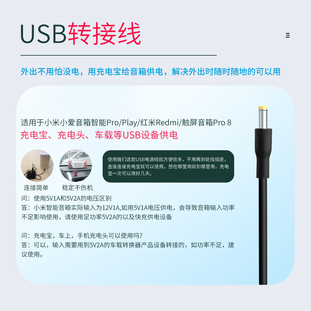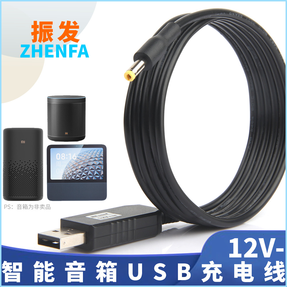 淘宝振发 适用于 小米Redmi小爱音箱智能音响Pro电源线充电宝车载USB转接线play版/触屏8/Art电源适配器USB线12V