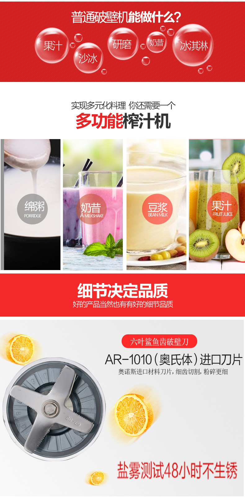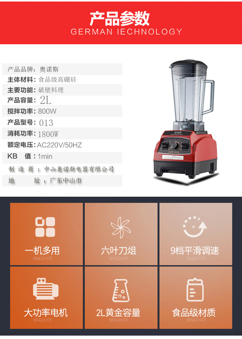 天猫奥诺斯商用奶茶店冰沙机家用破壁料理机榨汁机打冰机碎冰机搅拌机