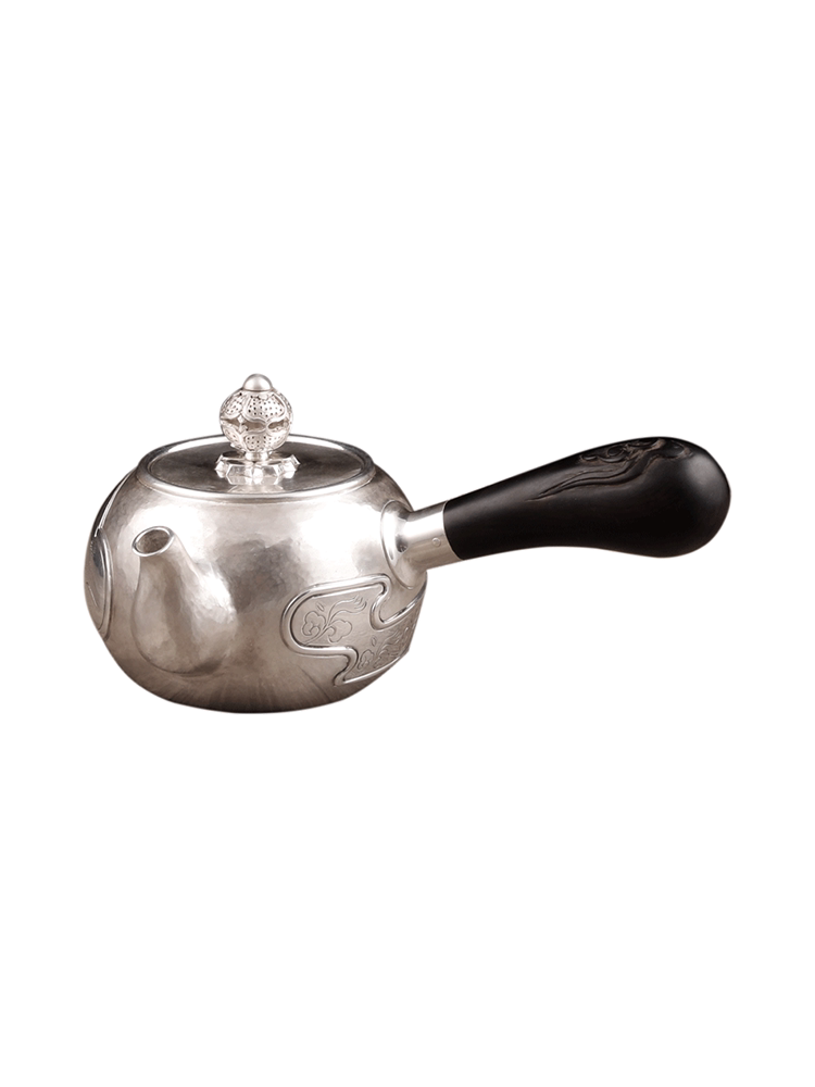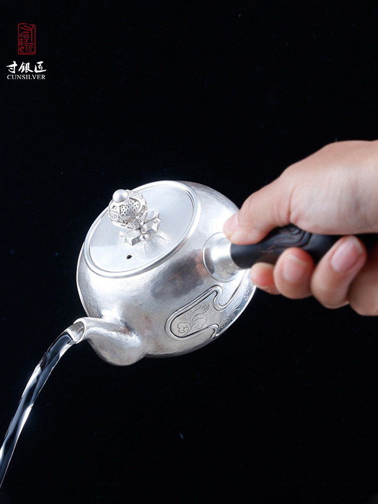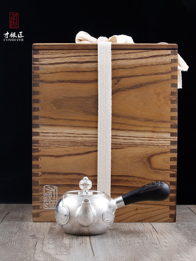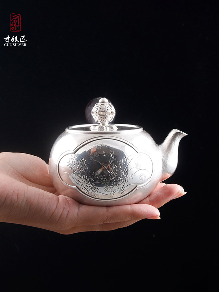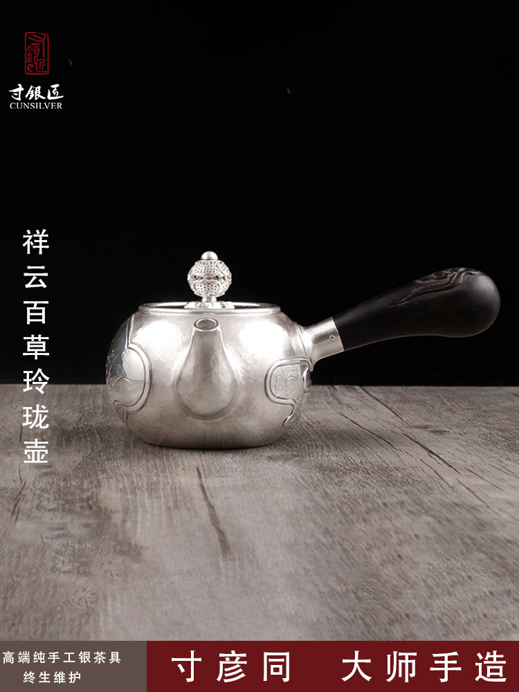 淘宝寸银匠寸彦同纯手工银壶纯银泡茶壶侧把壶祥云百草壶一体壶需定做