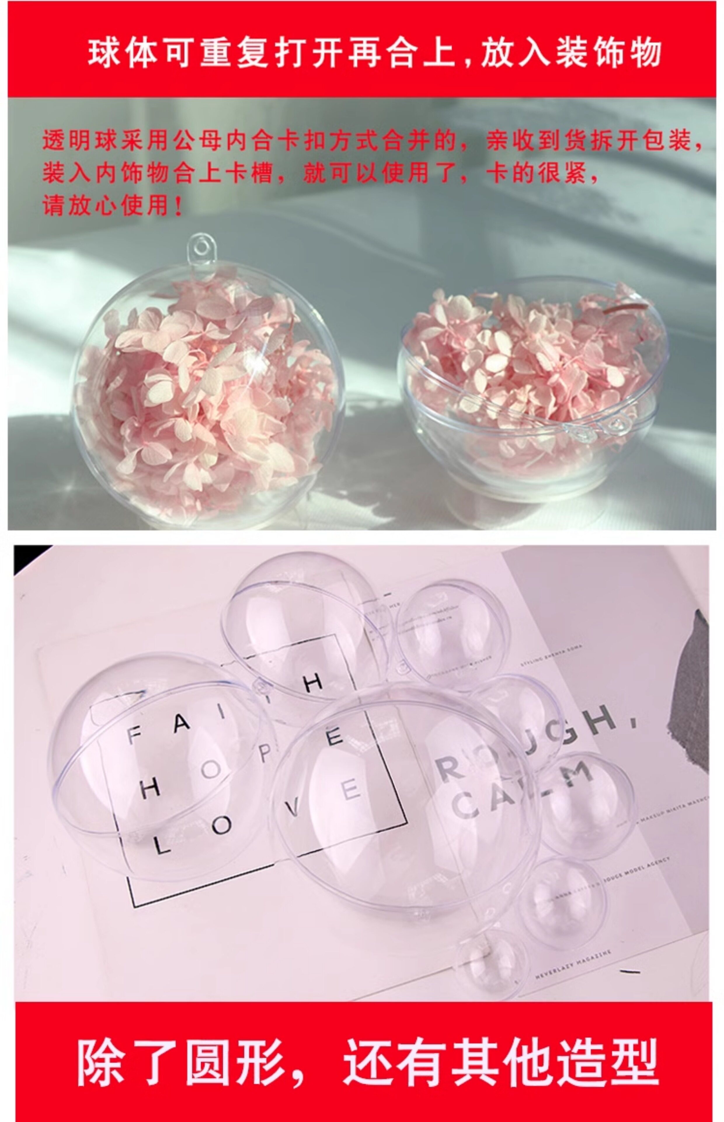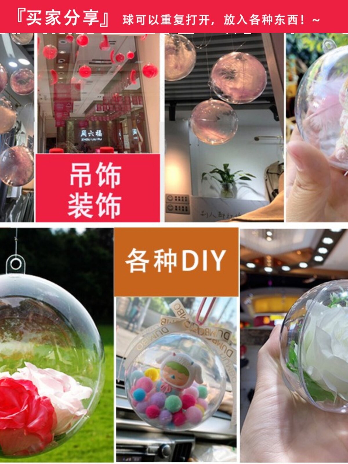 淘宝透明球空心球亚克力球塑料球壳圆球圆形球幼儿园DIY球装饰球吊球