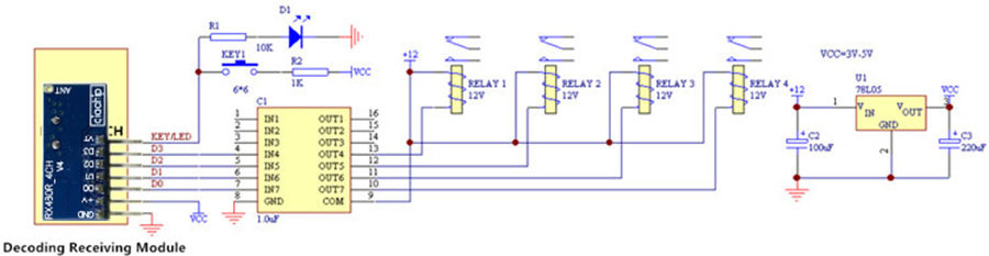 淘宝超外差无线迷你接收发射模块4路高电平输出1527遥控开关电路板433