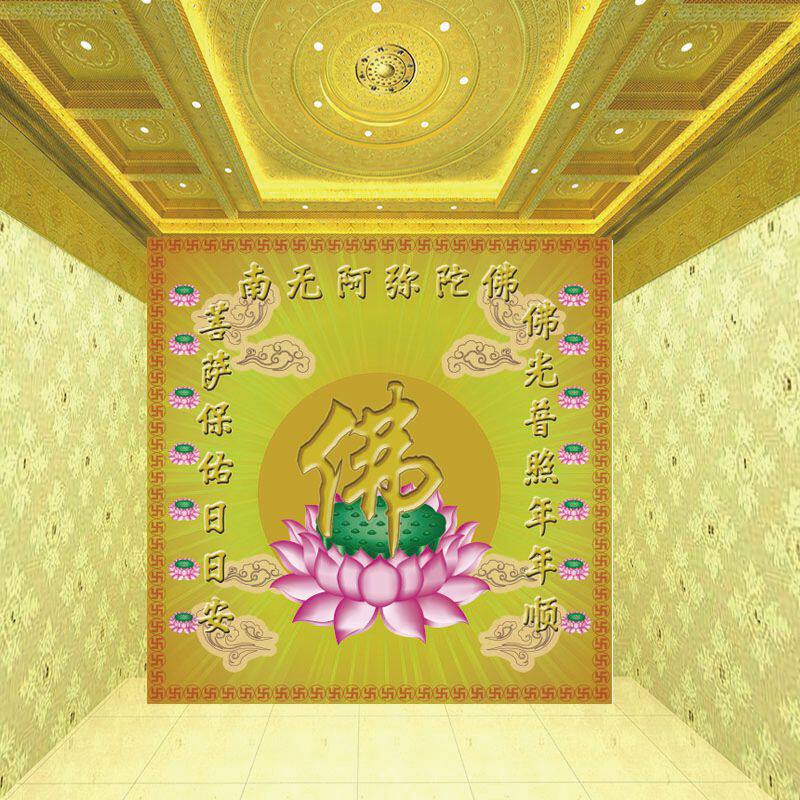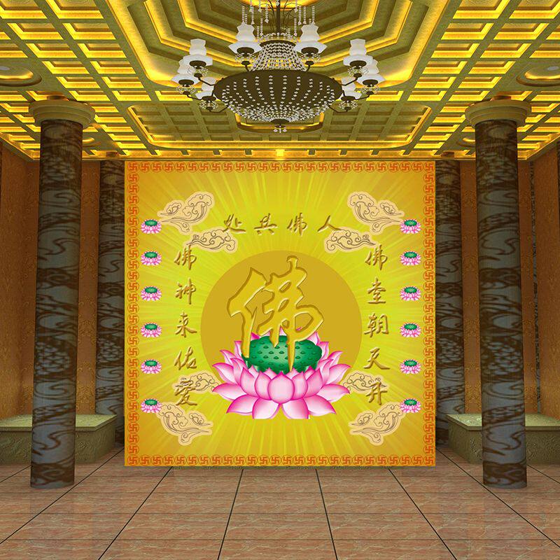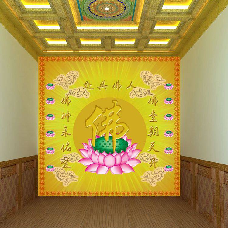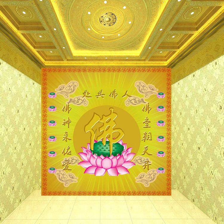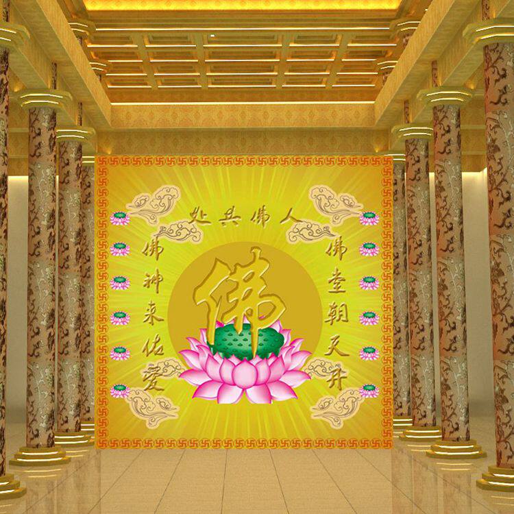 淘宝佛光普照金色佛字立体壁纸佛教佛堂背景墙纸中式古典大型壁画