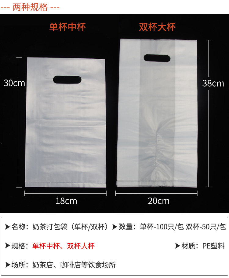 淘宝奶茶饮料打包袋单双杯袋 加厚奶茶杯袋手提袋塑料袋外卖包装袋子