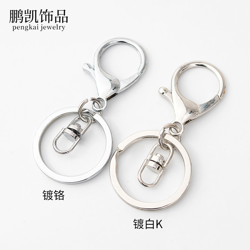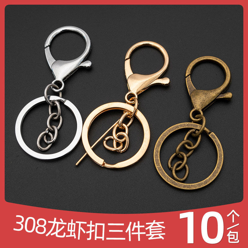 淘宝创意DIY配件308龙虾扣三件套钥匙扣镀金白K钥匙圈带八字扣四节链
