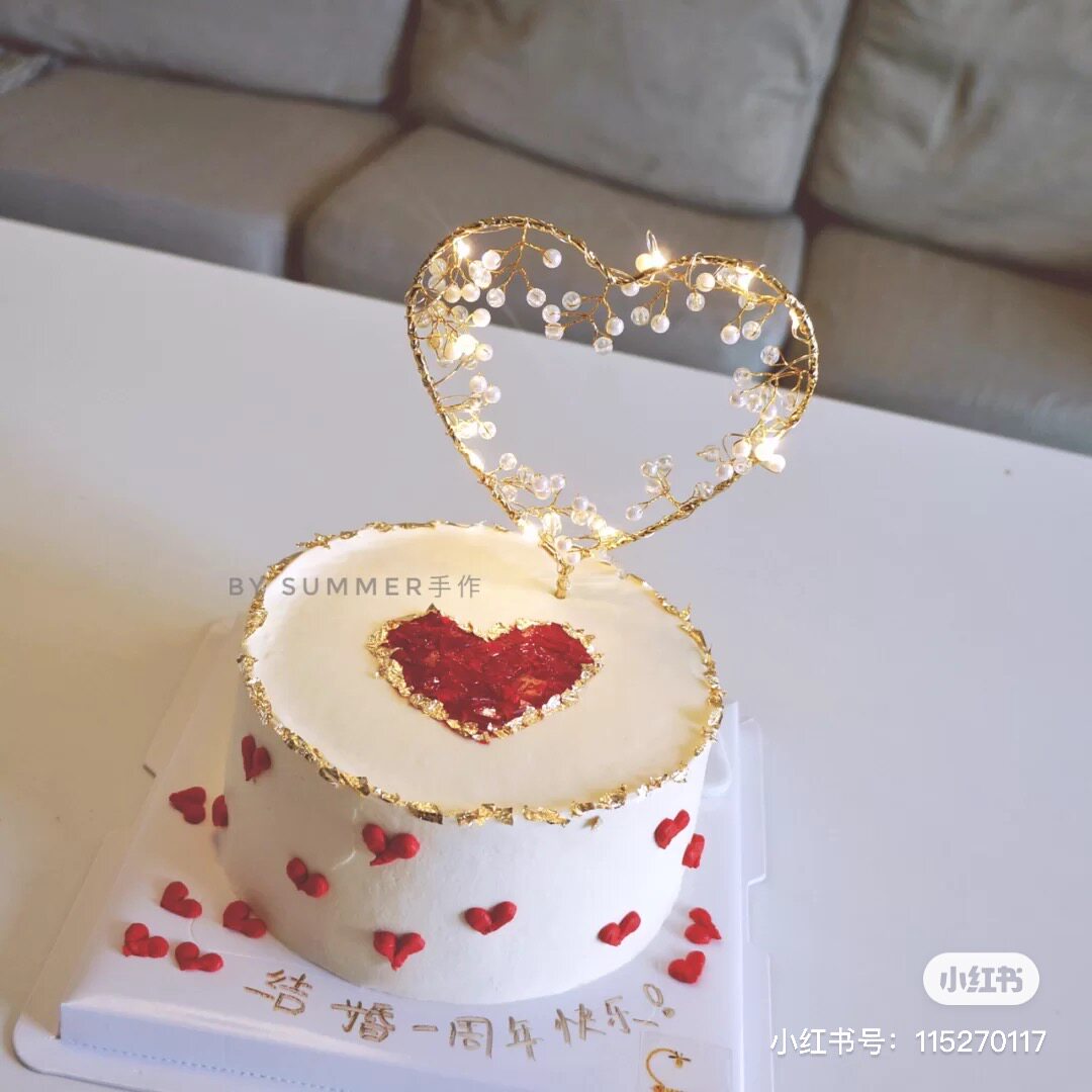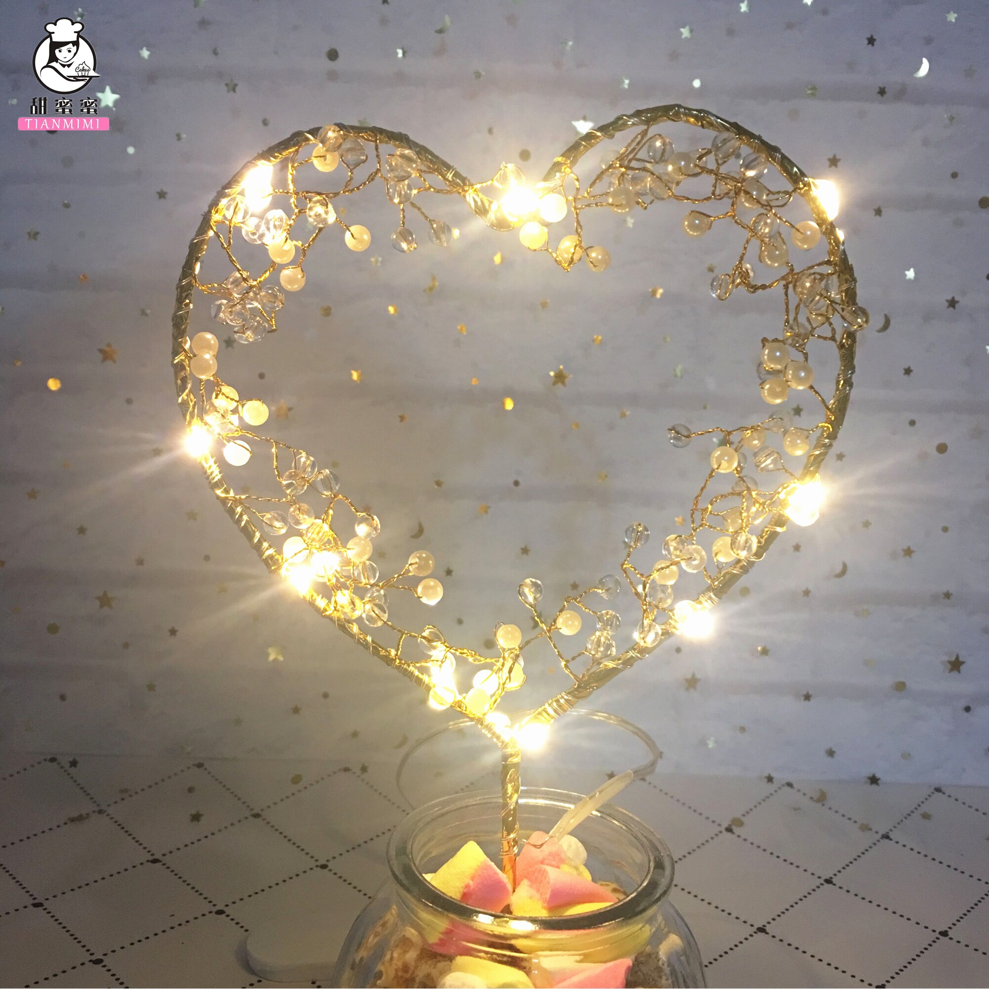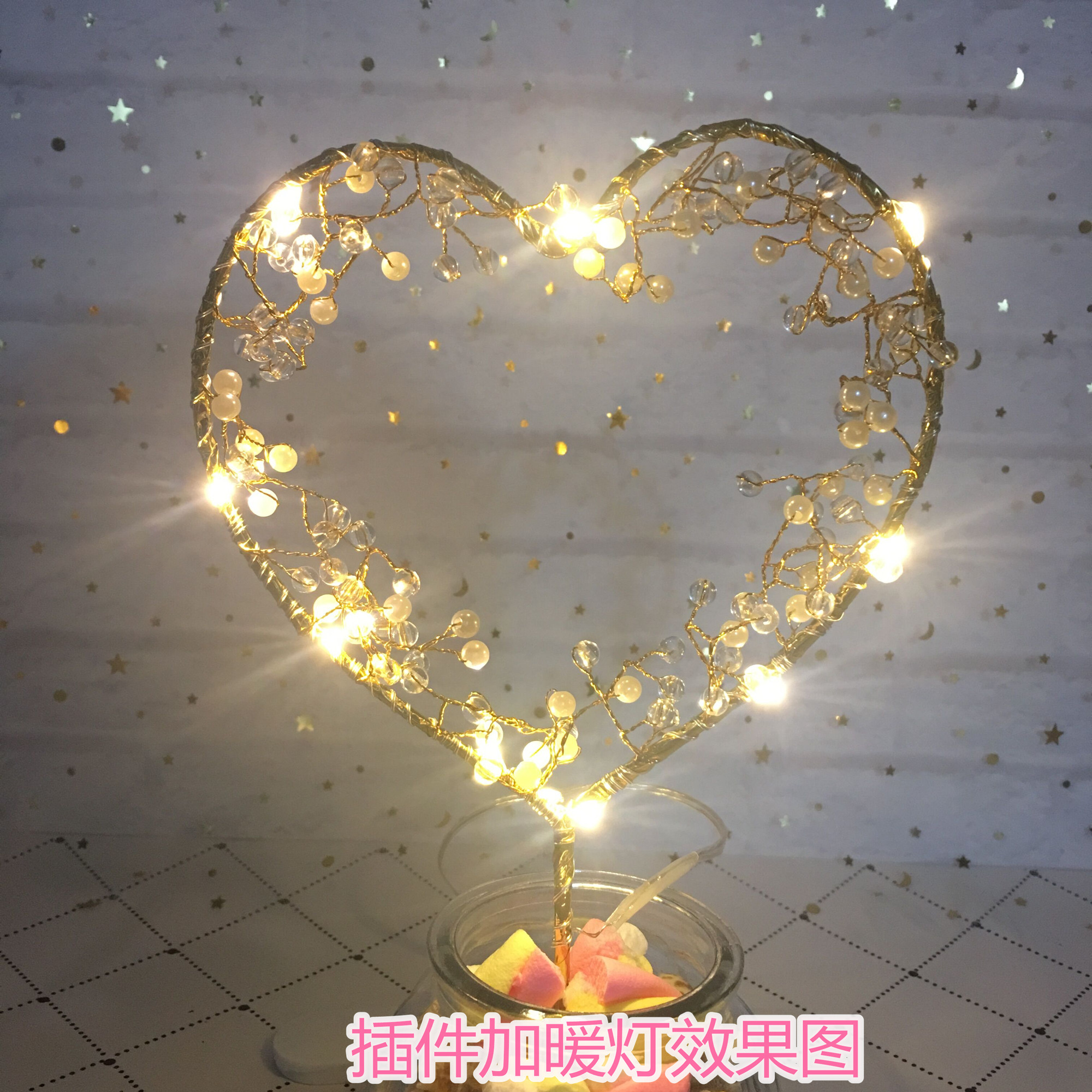 淘宝520七夕情人节生日蛋糕装饰摆件心形环珍珠水晶爱心灯插件插牌