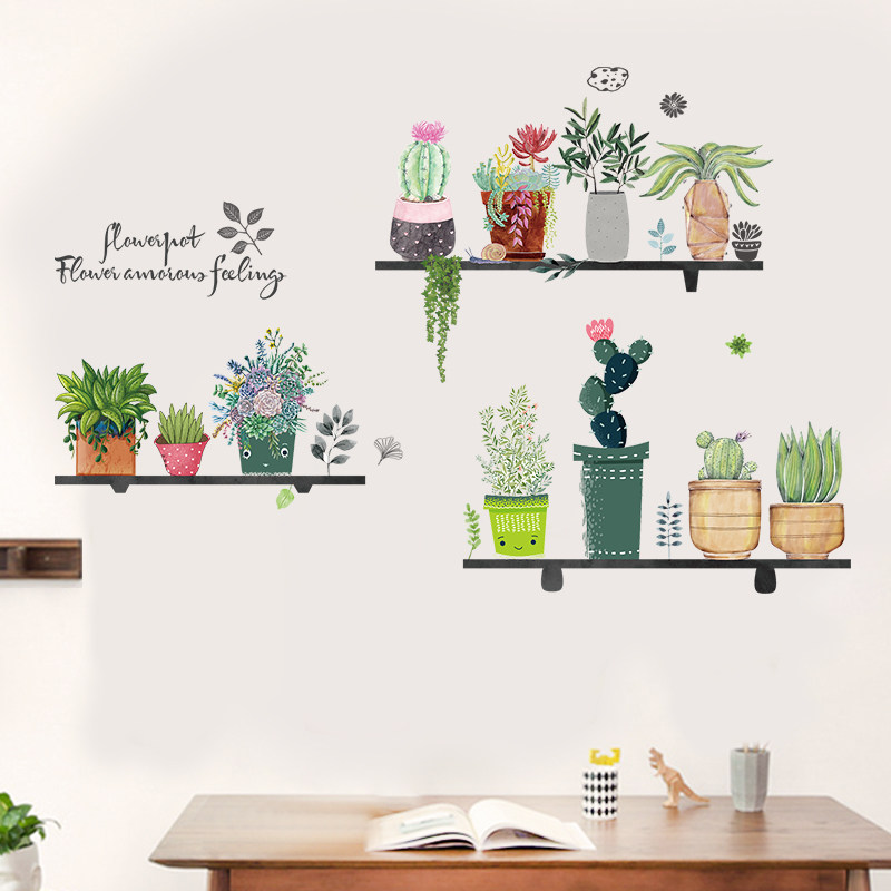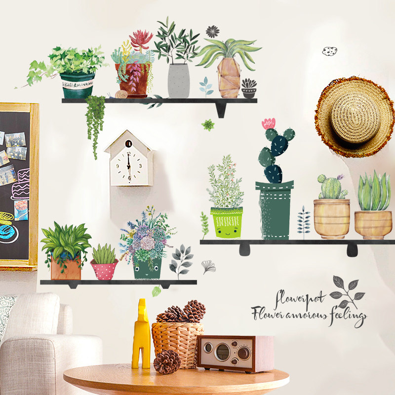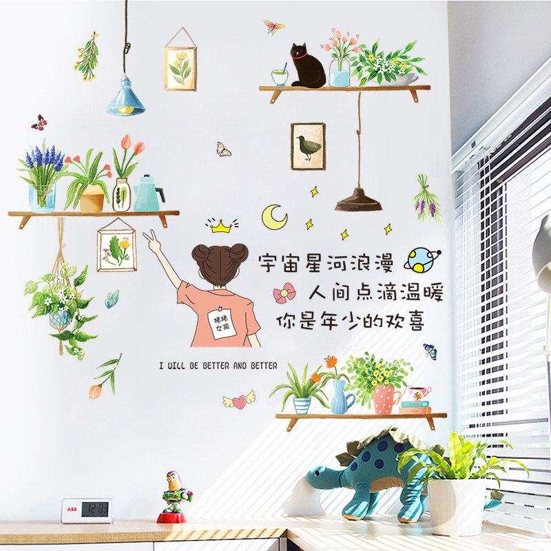 淘宝网红植物墙贴纸ins风女孩卧室房间宿舍墙壁墙面装饰自粘墙纸贴画