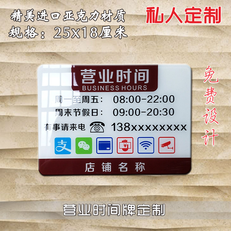 淘宝亚克力营业时间牌公司门牌店铺招牌广告牌商店营业中门贴告示牌