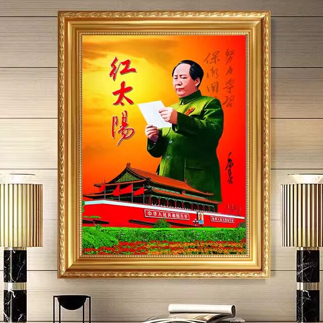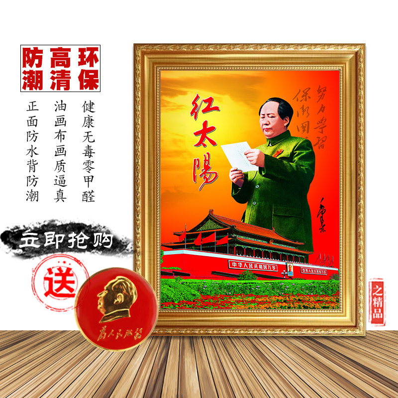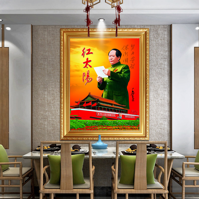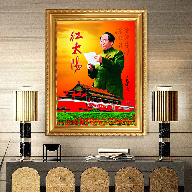 淘宝红太阳毛泽东像大厅中堂画墙画客厅装饰画挂画伟人画像毛爷爷挂像