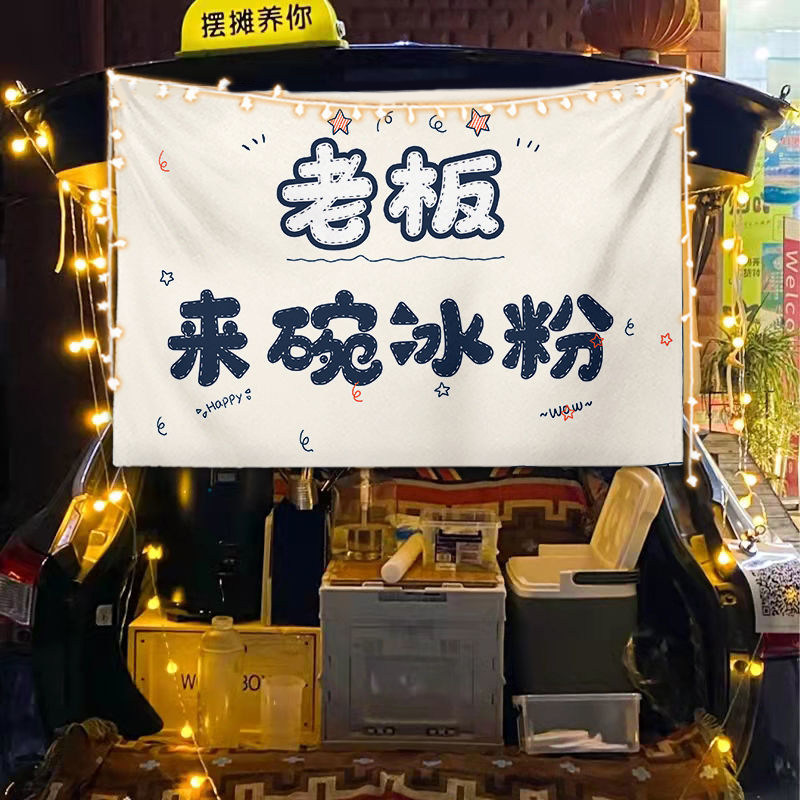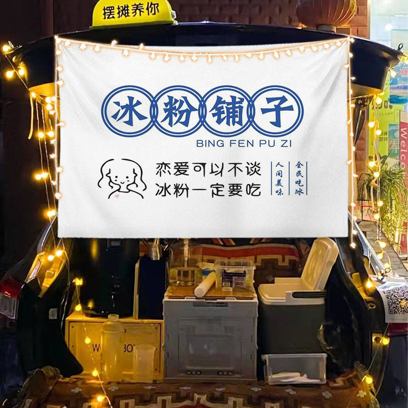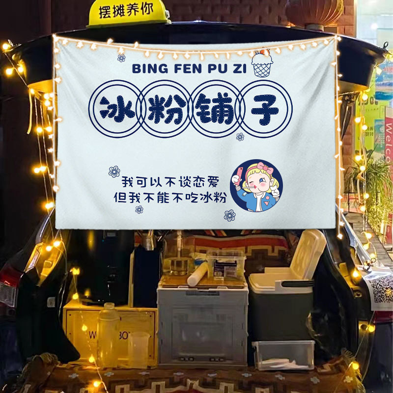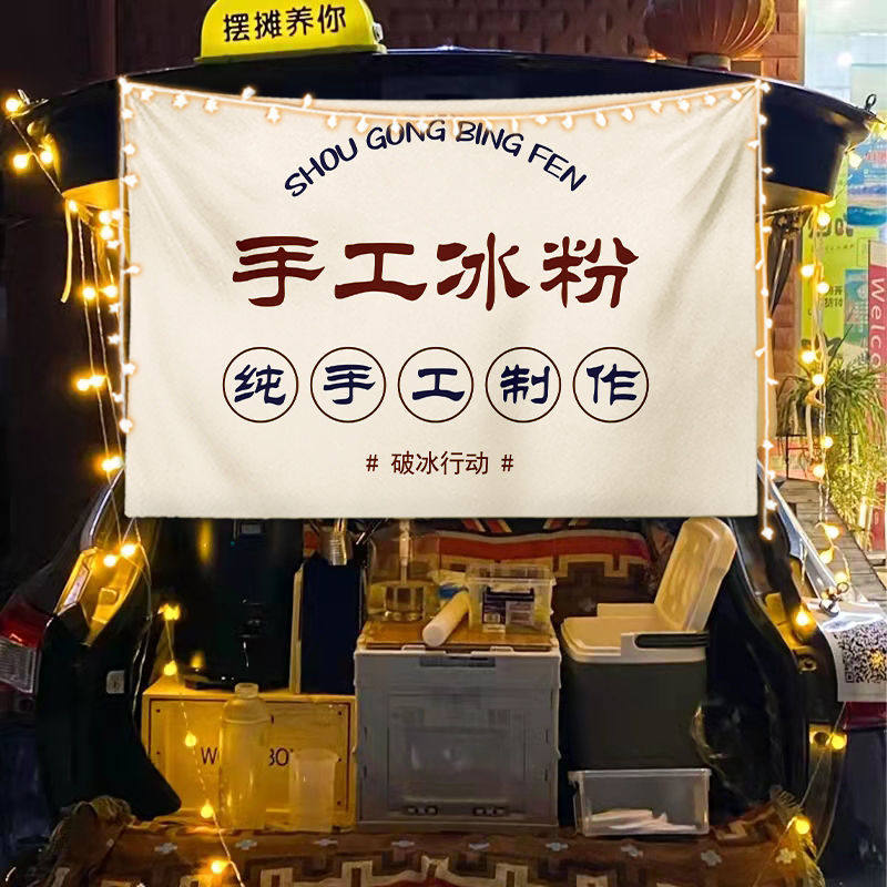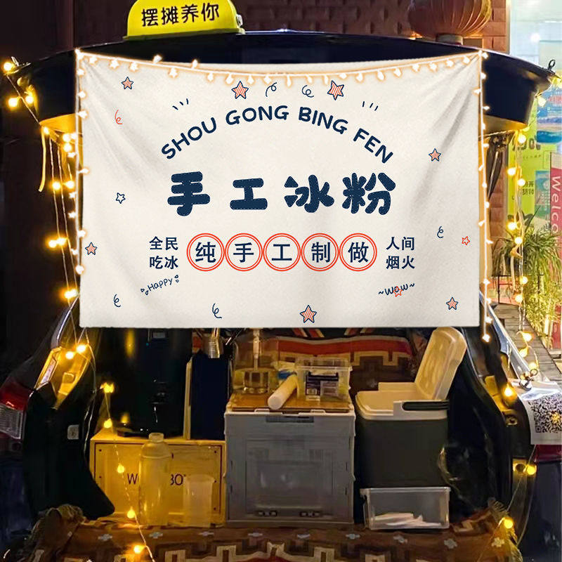淘宝街边后备箱摆摊挂布夜市集市冰粉提拉米苏背景布冰粉广告挂布