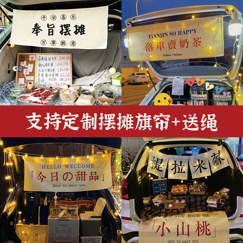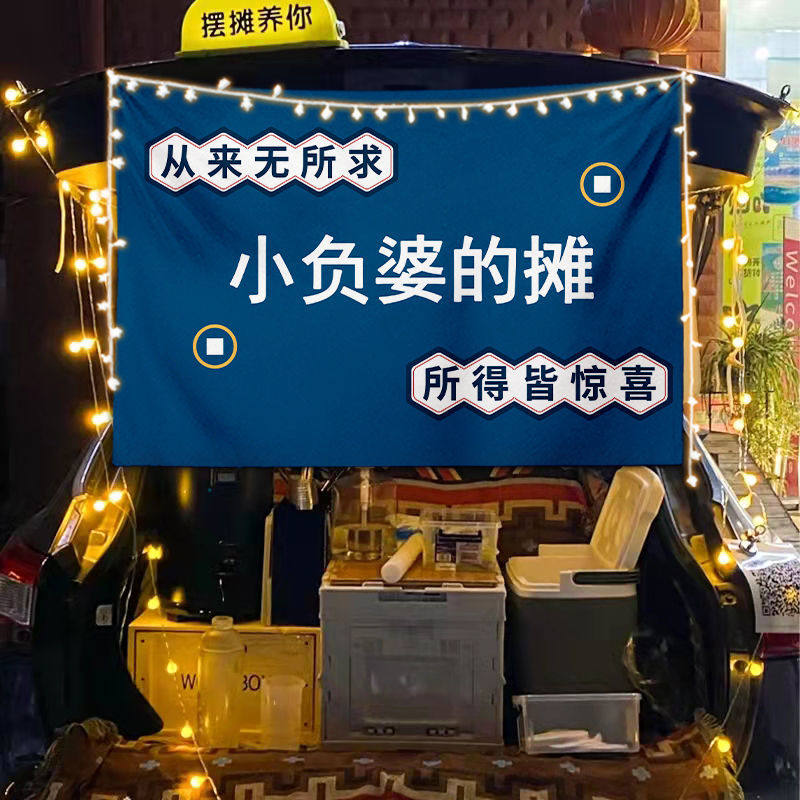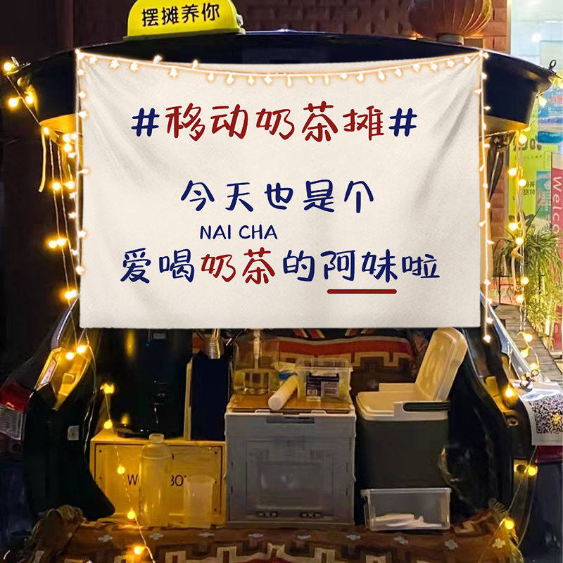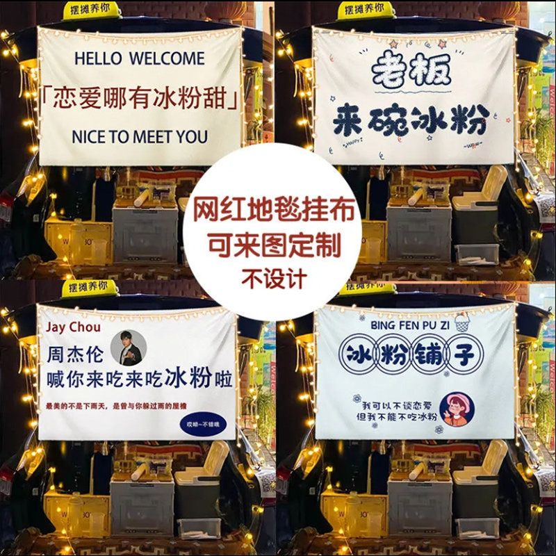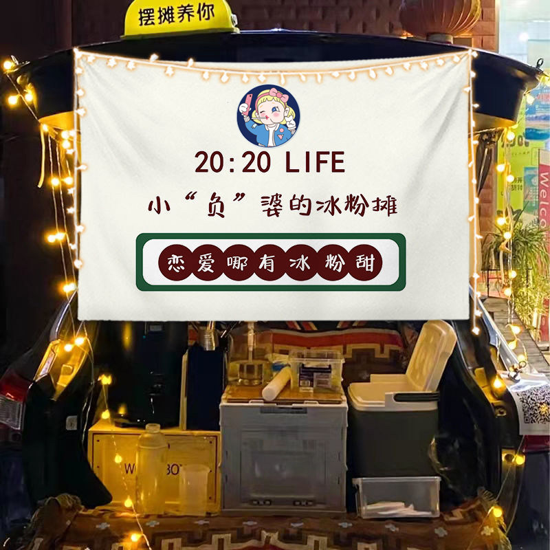 淘宝街边后备箱摆摊挂布夜市集市冰粉提拉米苏背景布冰粉广告挂布