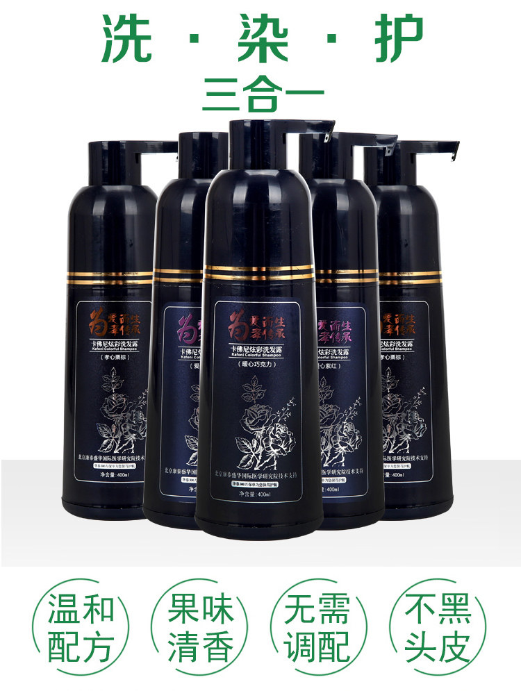 淘宝正品卡佛尼染发剂纯植物白转黑炫彩洗发露水炫彩2020流行色染发膏