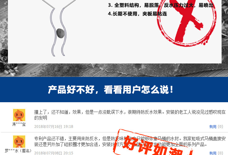淘宝马桶防反水总成C型 防反水倒流下水管道 单向自动控制阀门