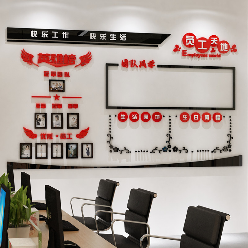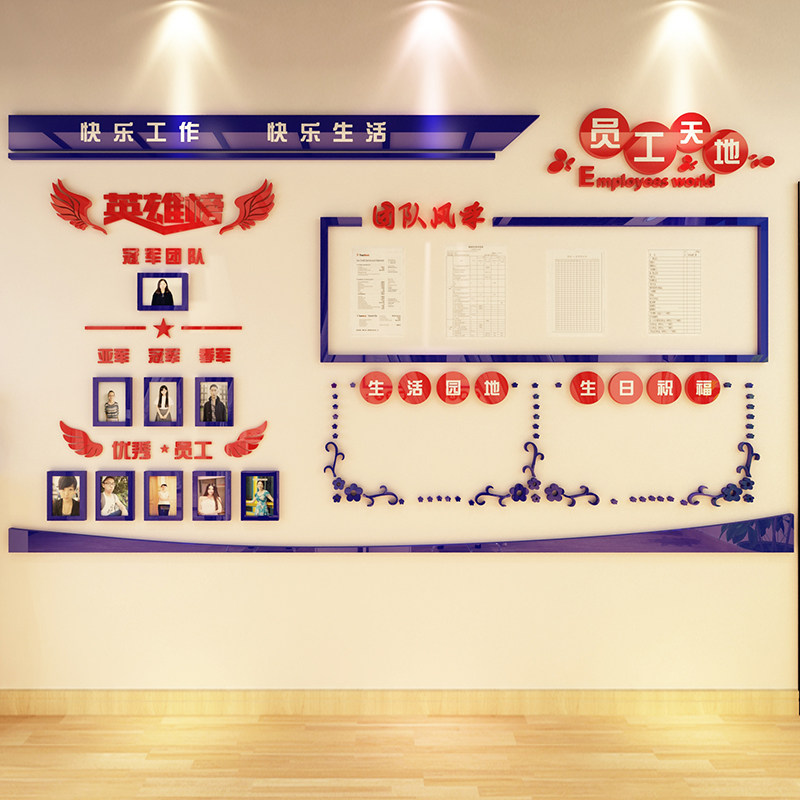 淘宝荣誉公告栏展示业绩榜贴员工风采团队办公室装饰企业公司文化墙