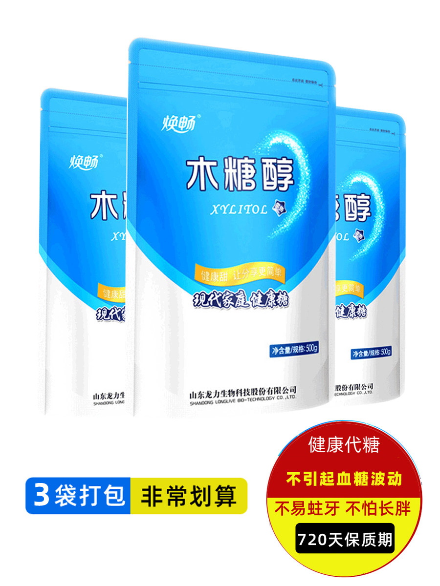 淘宝焕畅木糖醇500gx3袋甜味烘焙蛋糕食品食用代糖无蔗糖糖尿人可原料