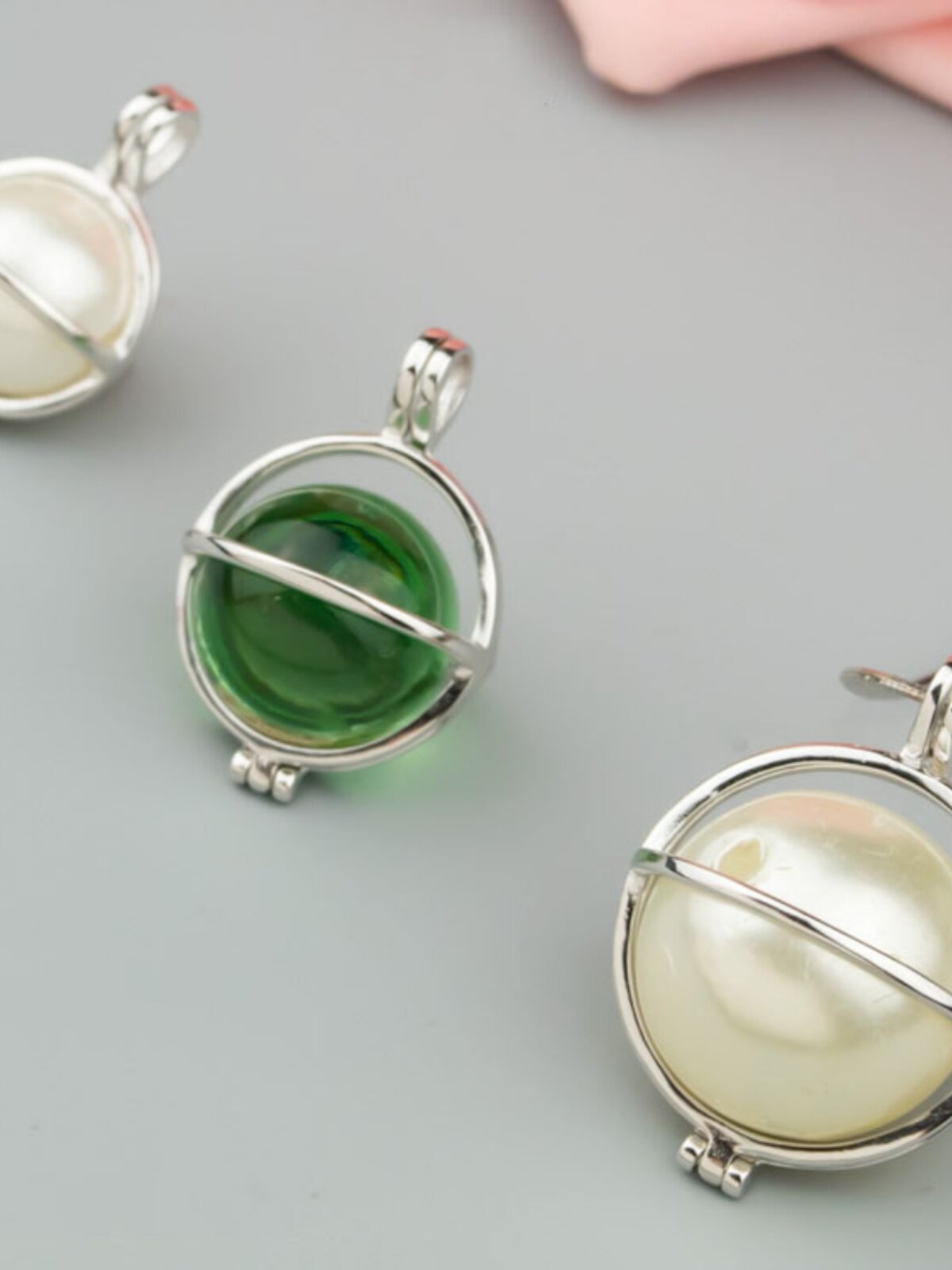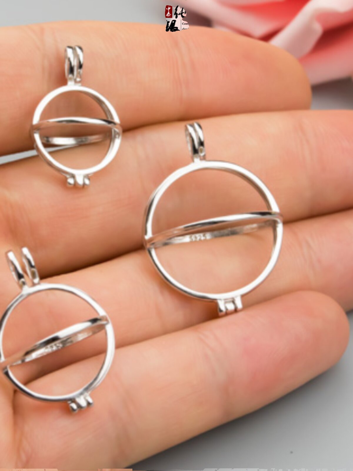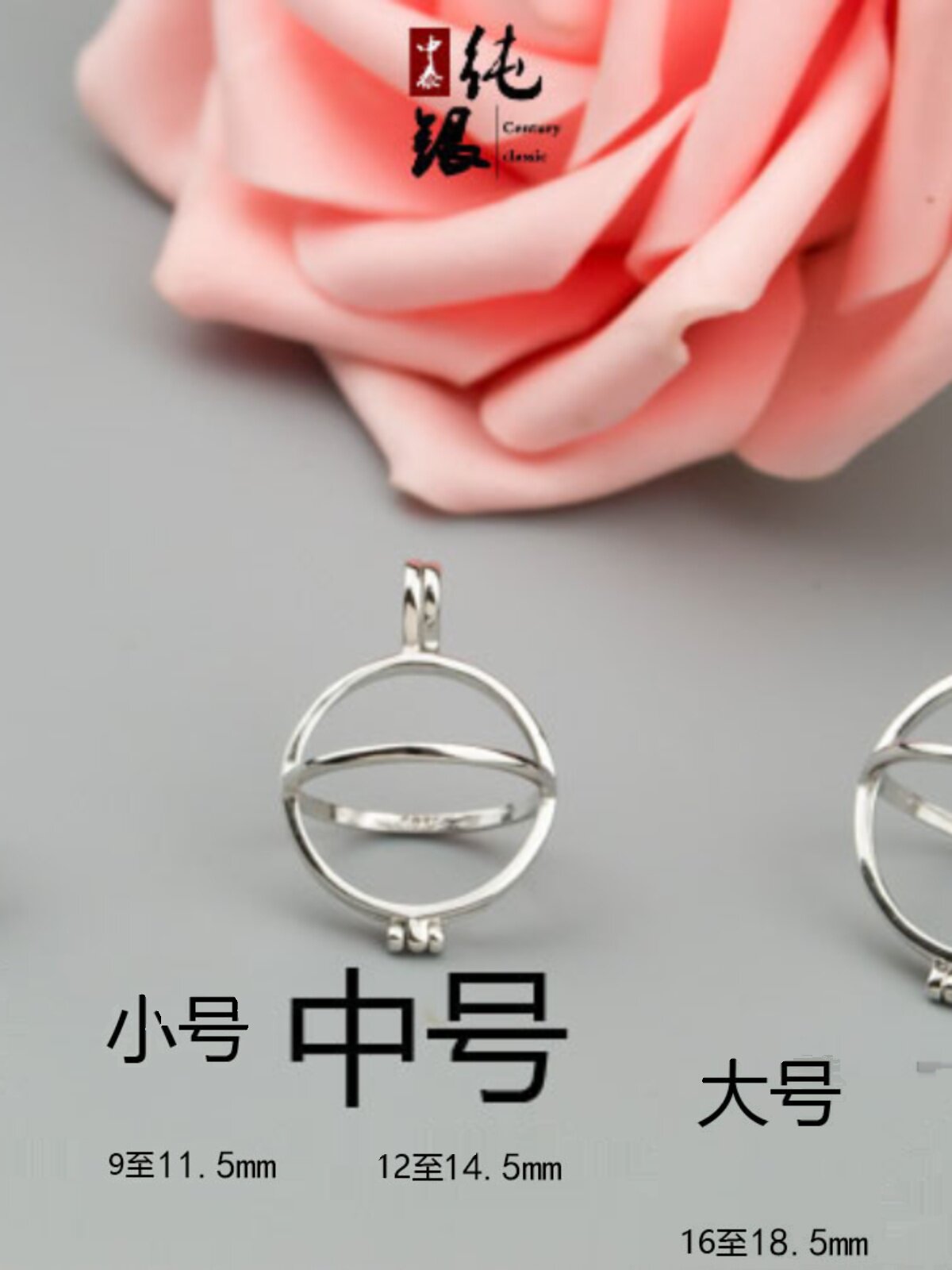 淘宝s925纯银圆珠珍珠吊坠空托球笼灯笼子扣头蜜蜡免打孔DIY配件9-19