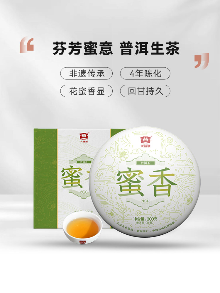 淘宝大益普洱茶蜜香普洱生茶饼茶300g云南勐海茶叶官方仓储