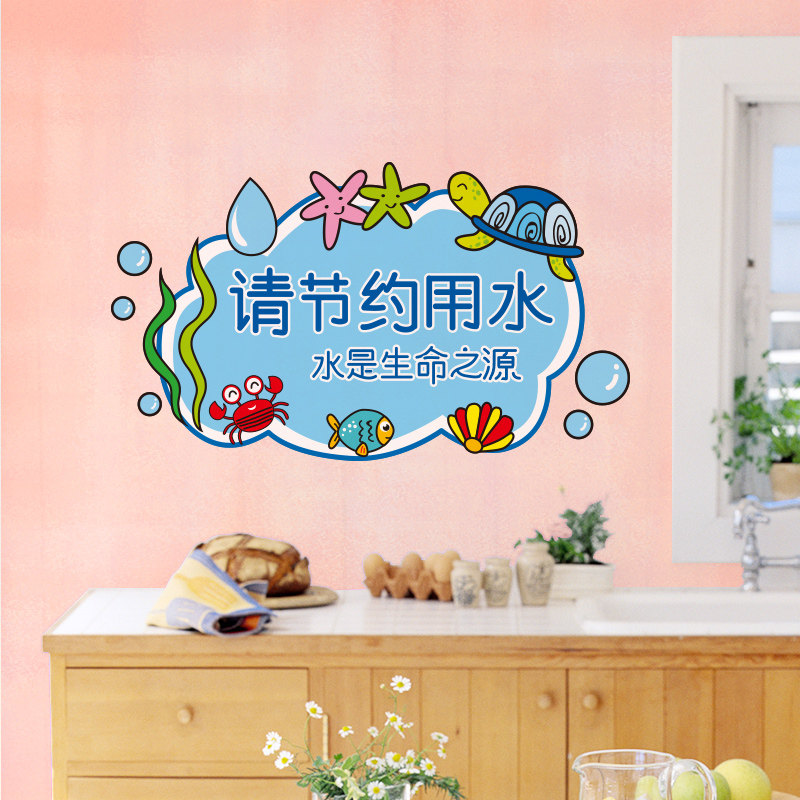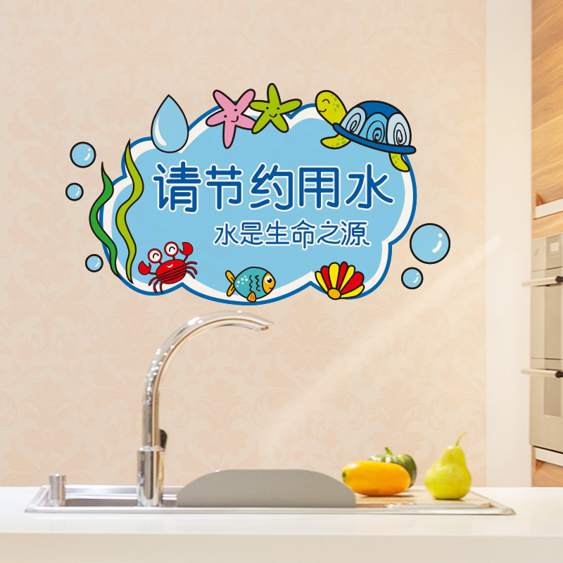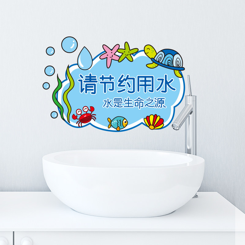 淘宝节约用水提示贴创意卫生间厕所洗手盆温馨提示墙贴纸贴画自粘标语