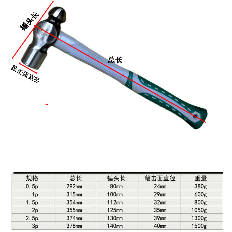 淘宝百威狮 榔头锤子镜面抛光奶头铁锤 圆头锤铁锤木锤榔头柄安装锤子