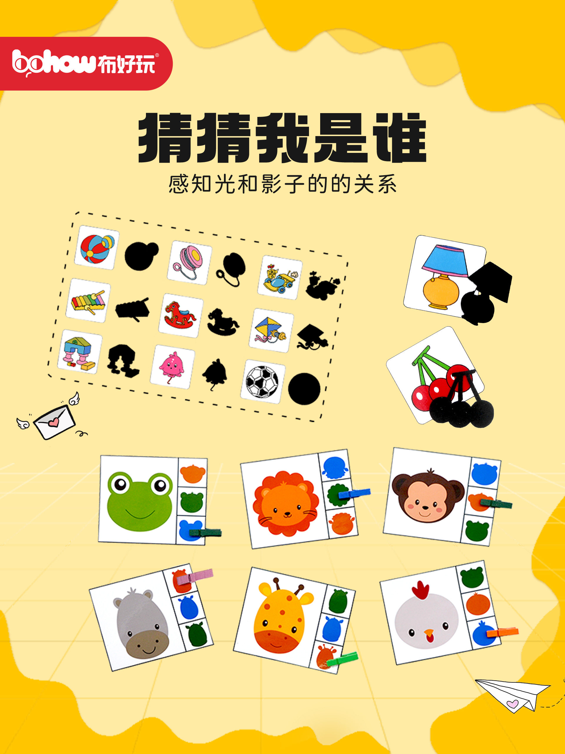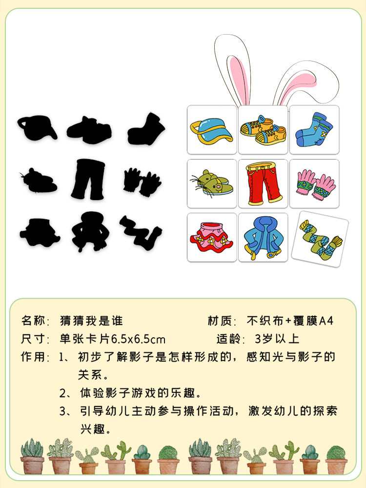 淘宝幼儿园小班科学区角游戏猜猜我是谁找影子配对形状对应早教玩具