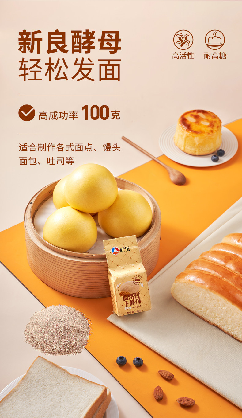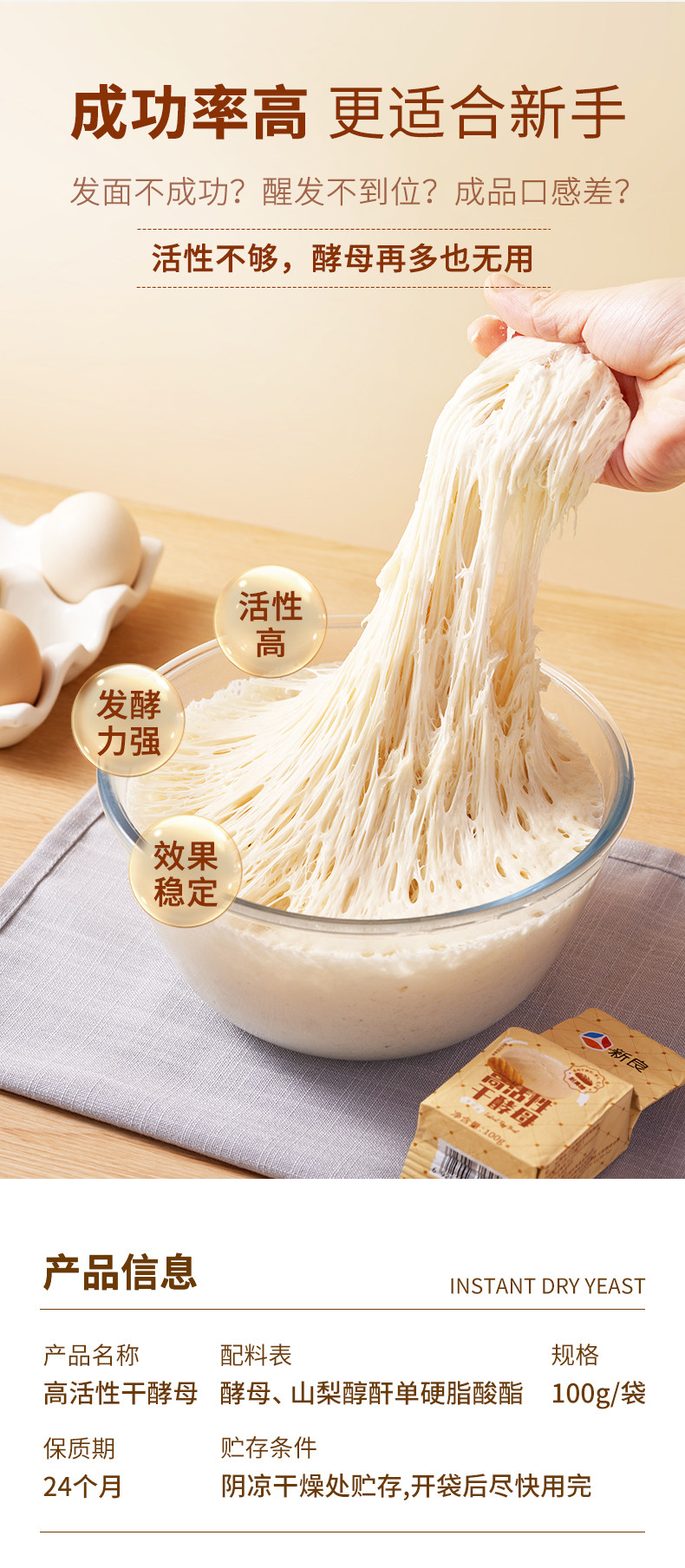淘宝新良高活性干酵母100g面包机酵母菌发酵粉耐高糖干酵母粉烘焙原料