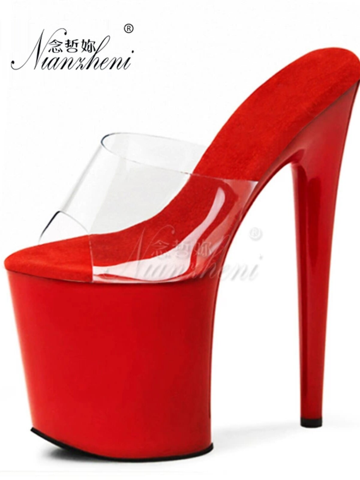 淘宝20cm超高跟鞋大码夜店情趣透明水晶凉拖鞋脚宽细跟女一体跟防水台