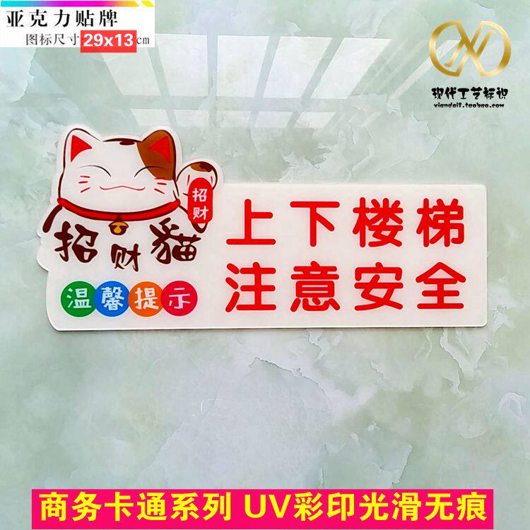 淘宝创意卡通公共楼道警惕标识上下楼梯注意安全告示牌学校楼梯墙贴