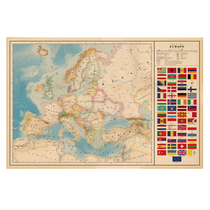 淘宝复古欧洲地图英文版客厅办公室挂画墙画壁画防水油画布地图装饰画
