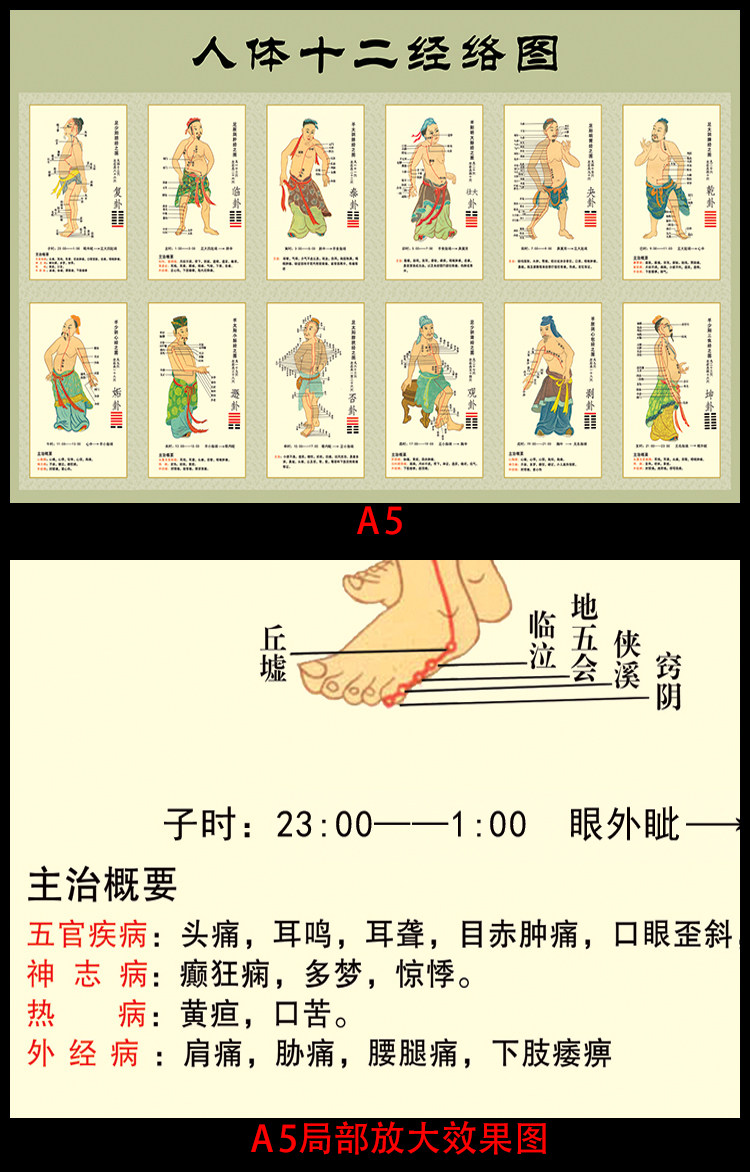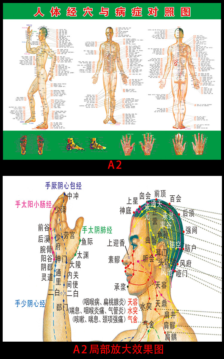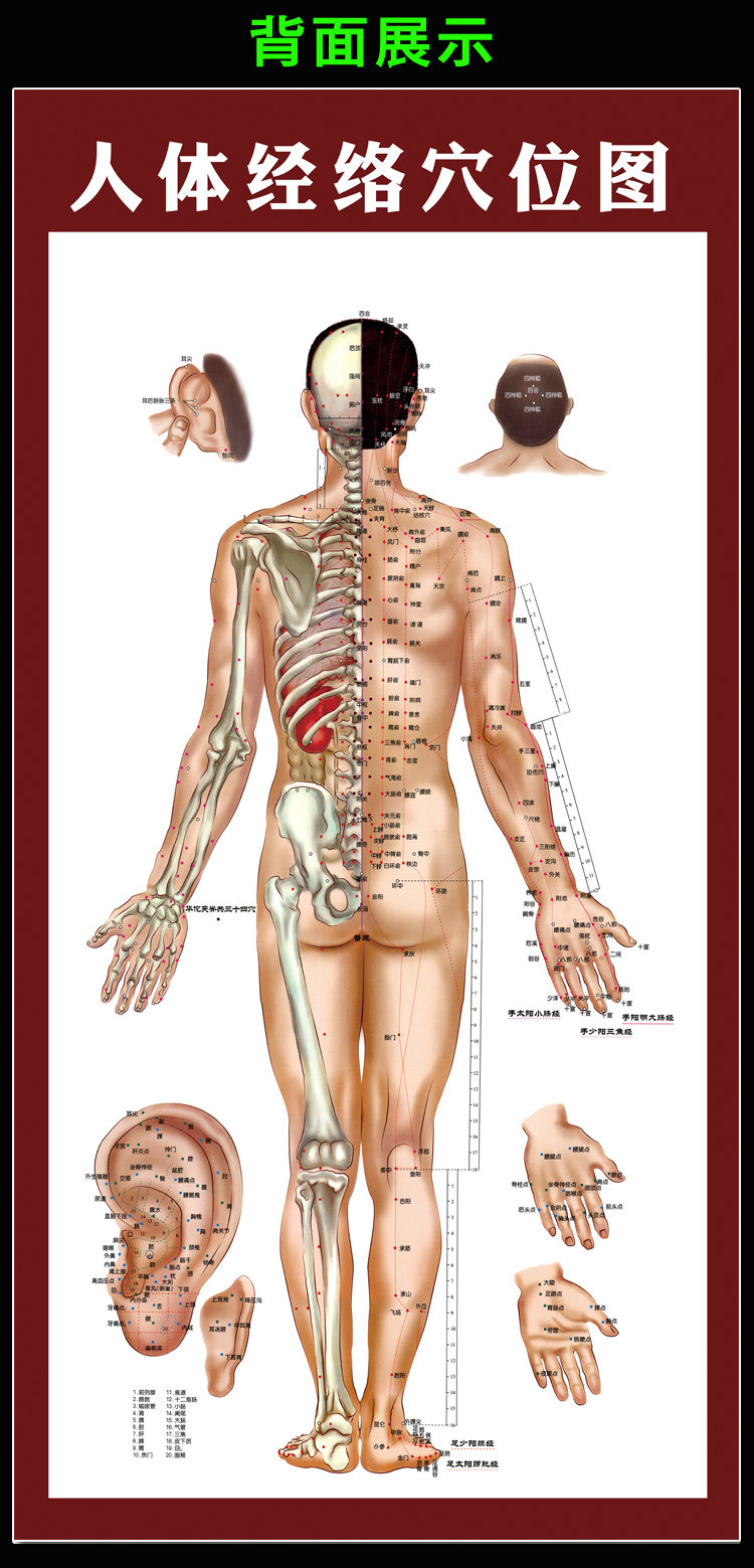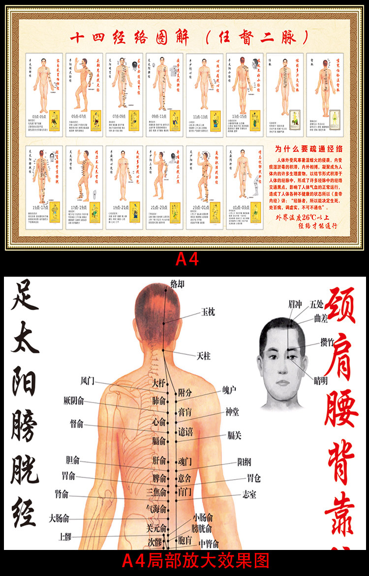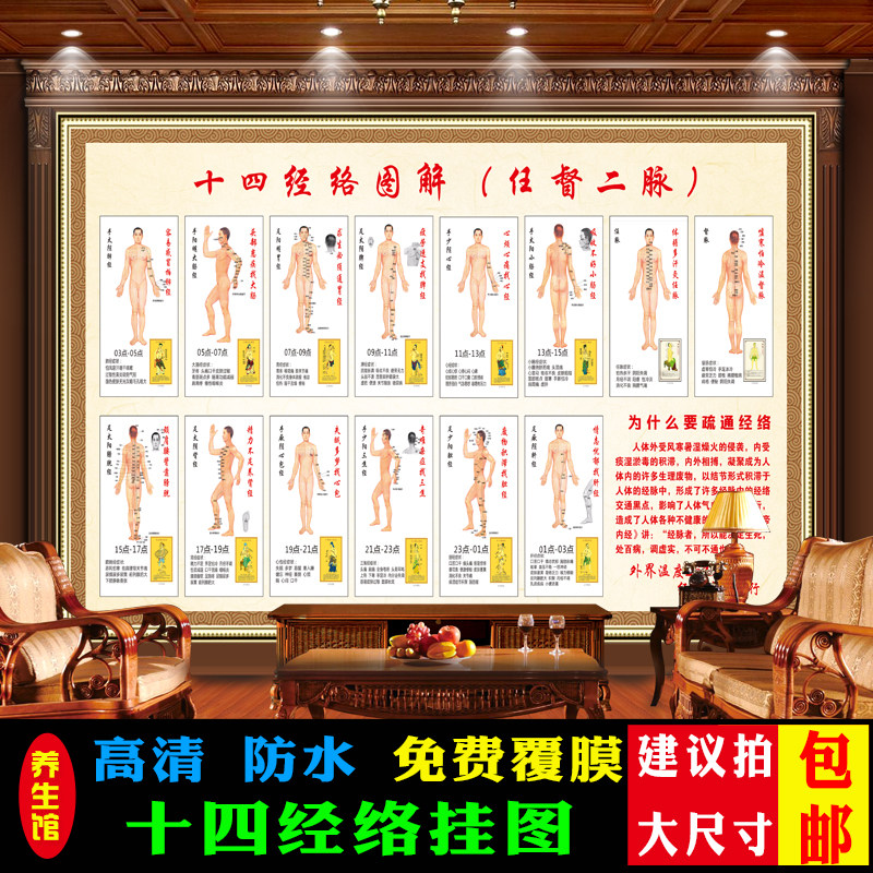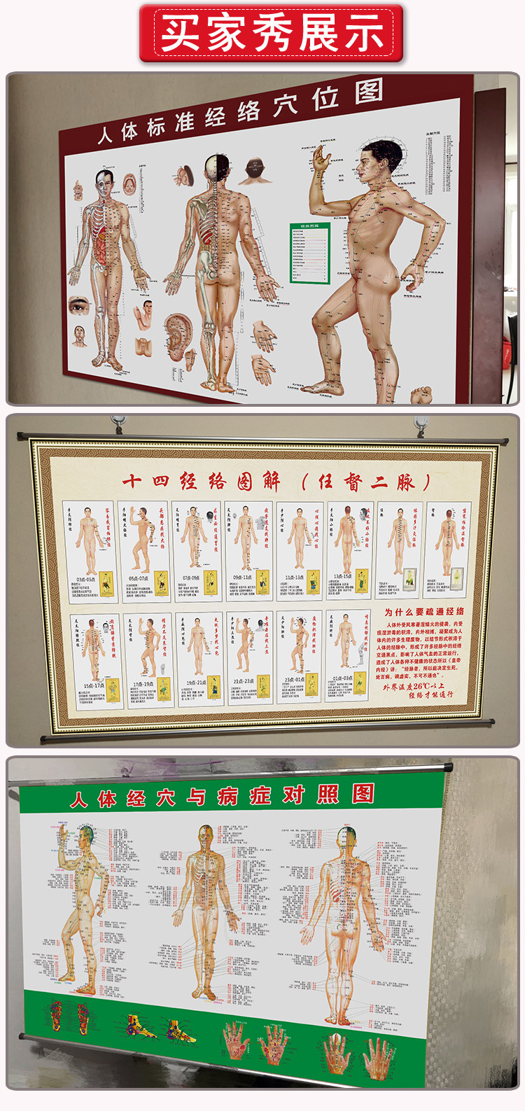 淘宝人体经络穴位图大挂画高清正版家用贴画医院诊所按摩推拿12穴位图