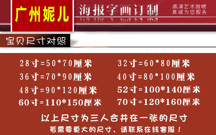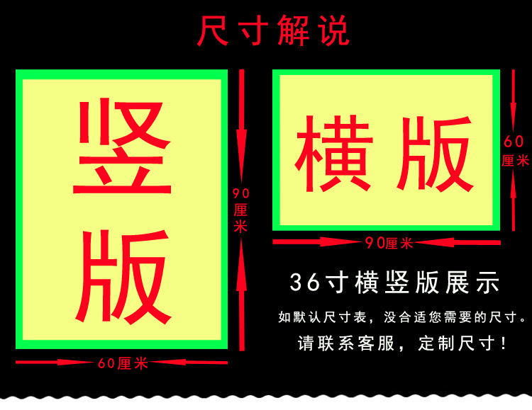 24寸(40*60厘米)尺寸偏小 28寸(50*70厘米)中小号 32寸(60*80厘米)中号尺寸 36寸(70*90厘米)热卖尺寸 40寸(80*100厘米)店长推荐尺寸 48寸(90*120厘米)店长推荐尺寸 52寸(100*140厘米)大尺寸 60寸(110*150厘米)较大尺寸 70寸(120*160厘米)特大尺寸 请选择