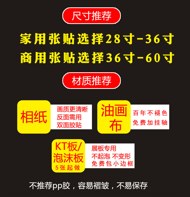 相纸(背面无胶) PP胶(撕开即贴) 油画布(免费加挂轴) 请选择