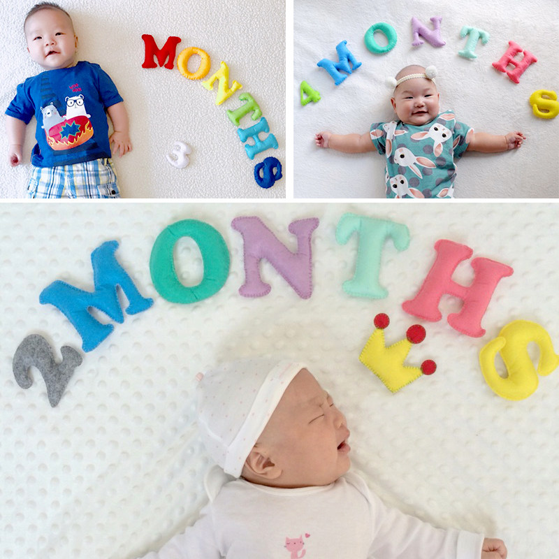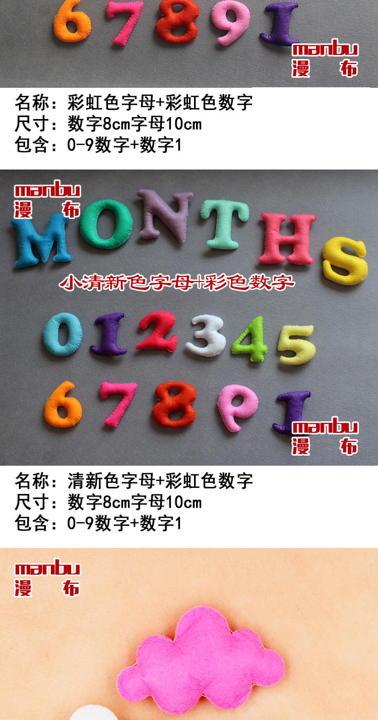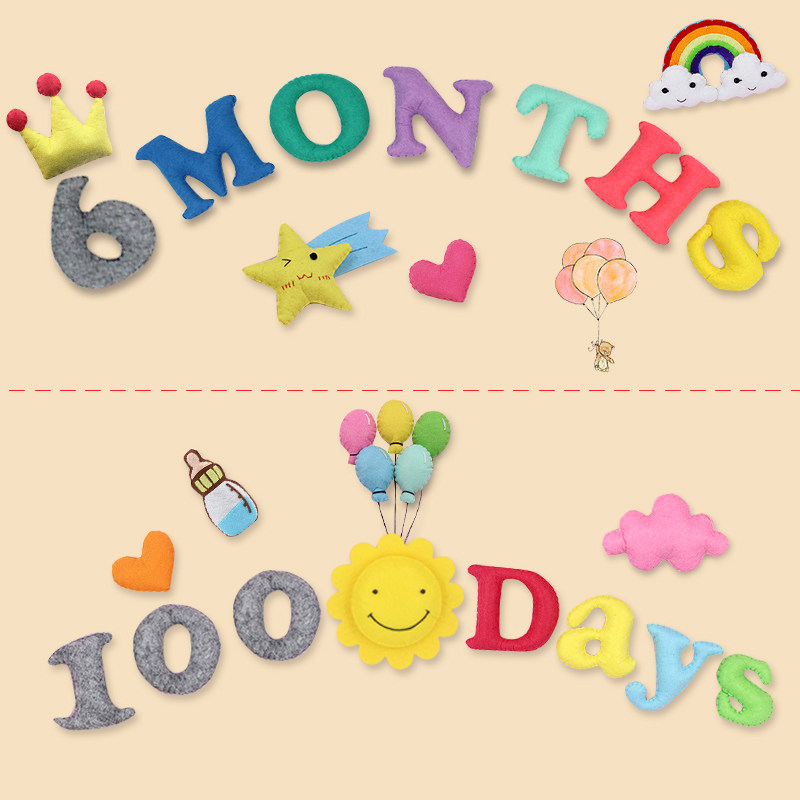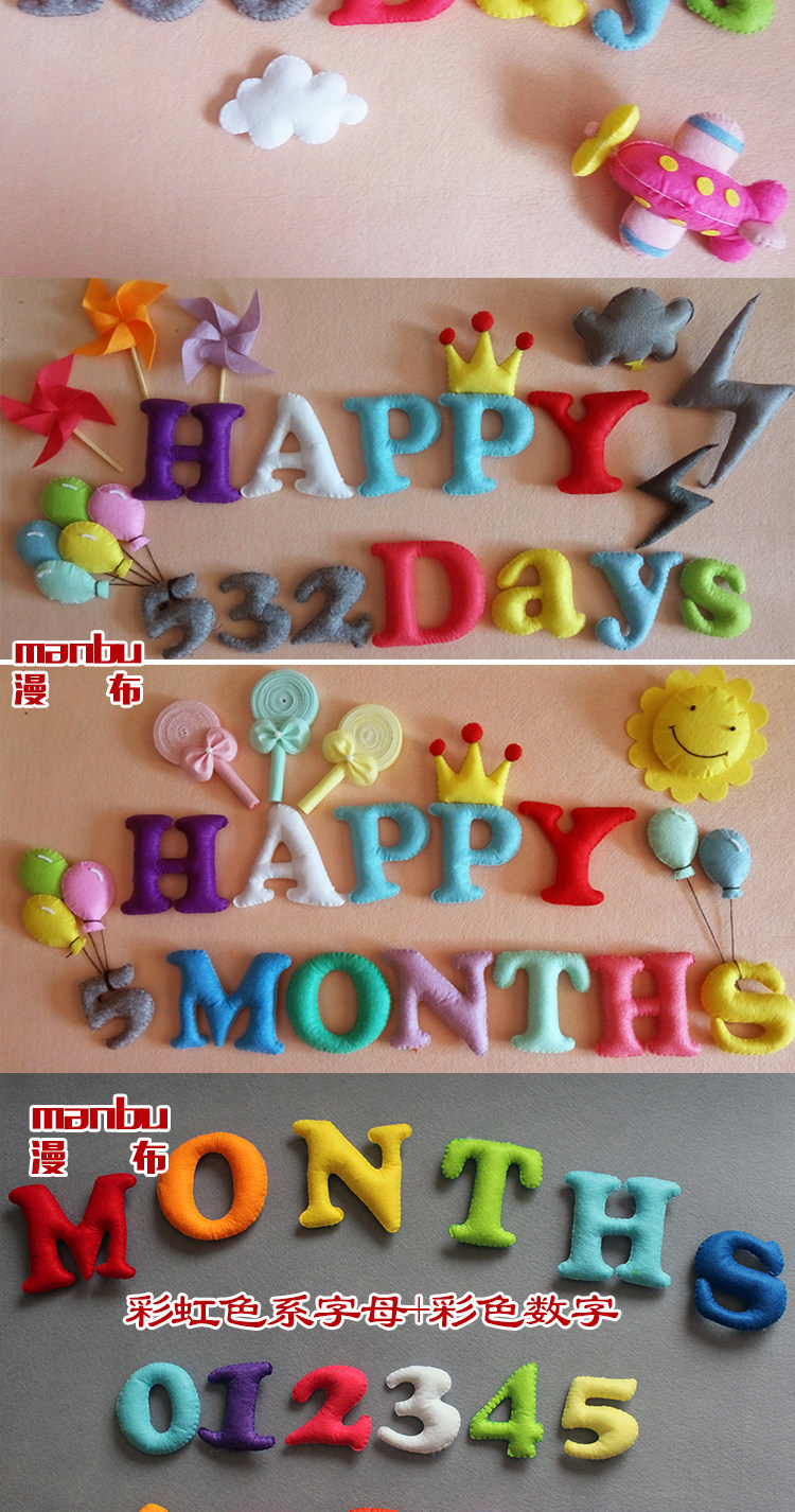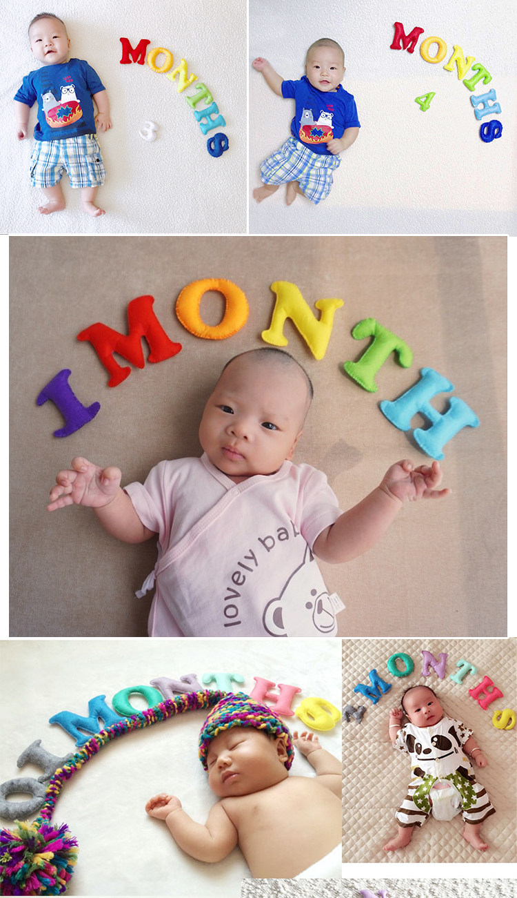 淘宝不织布拍照月份彩色英文字母数字道具婴儿满月儿童100天百天成品